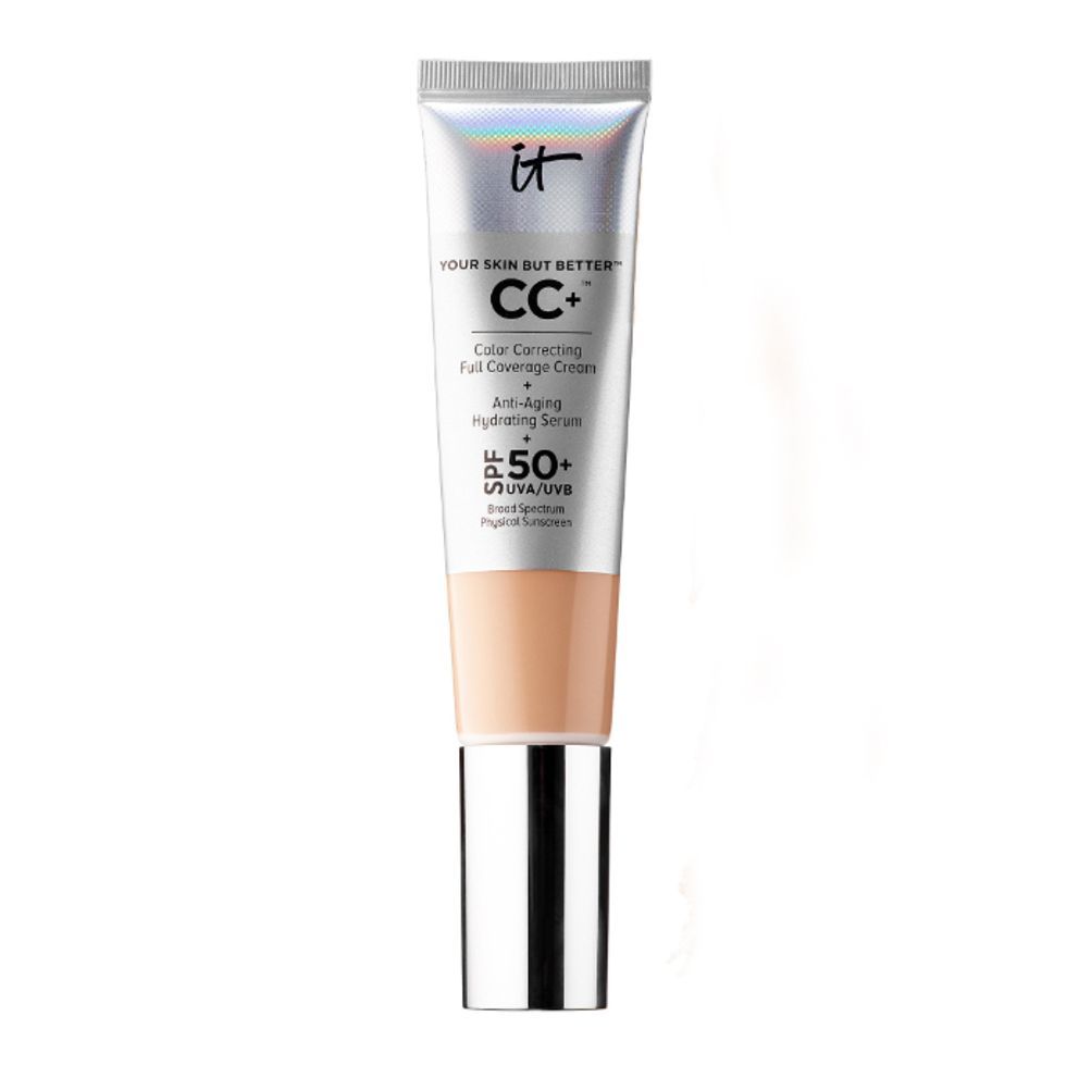 “There’s a new Korean brand called Cle— they make a cushion highlighter, the Essence Moonlighter Cushion, that stays on for ages. I’ve used Tatcha Luminous Dewy Skin Mist every day for the past seven years. IT Cosmetics CC+ Cream with SPF 50+ stays on forever. I use the tiniest amount. For people that do like coverage, it’s the greatest for summertime.”