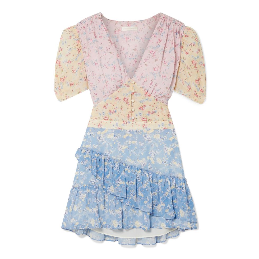 LoveShackFancy Bea Ruffled Floral-Print Silk-Georgette Mini Dress, $445