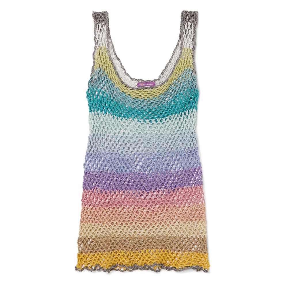 2. Rose Carmine Metallic Striped Crochet Knit Tank: Doesn’t this just conjure up images of sun and sand...and aperol spritz? It’s breezy and cute, plus, the holes are key for shaking out the sand so you don’t bring the beach back home with you.