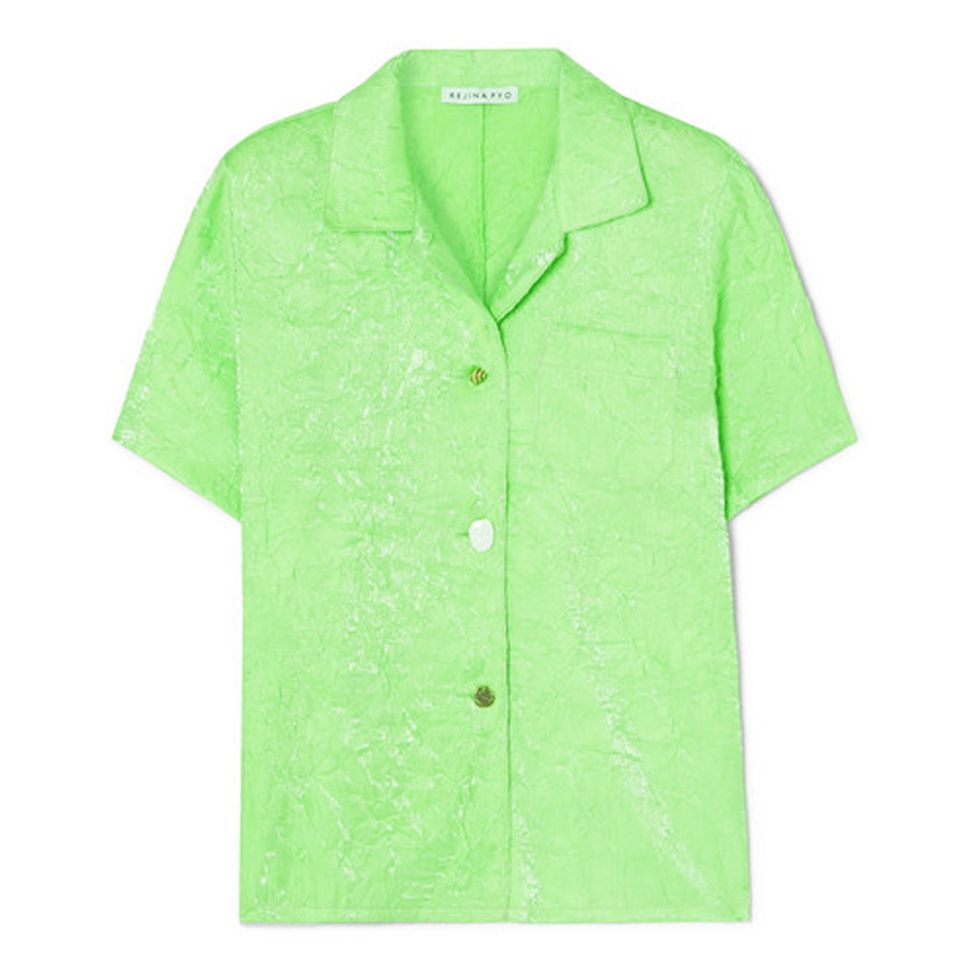 1. Rejina Pyo Crinkled Satin Shirt: My favorite thing to wear on the beach is always a loose, oversized tee. I love the boxy shape of this one, not to mention the amazing slime green color that will compliment my (soon to be) tan skin.