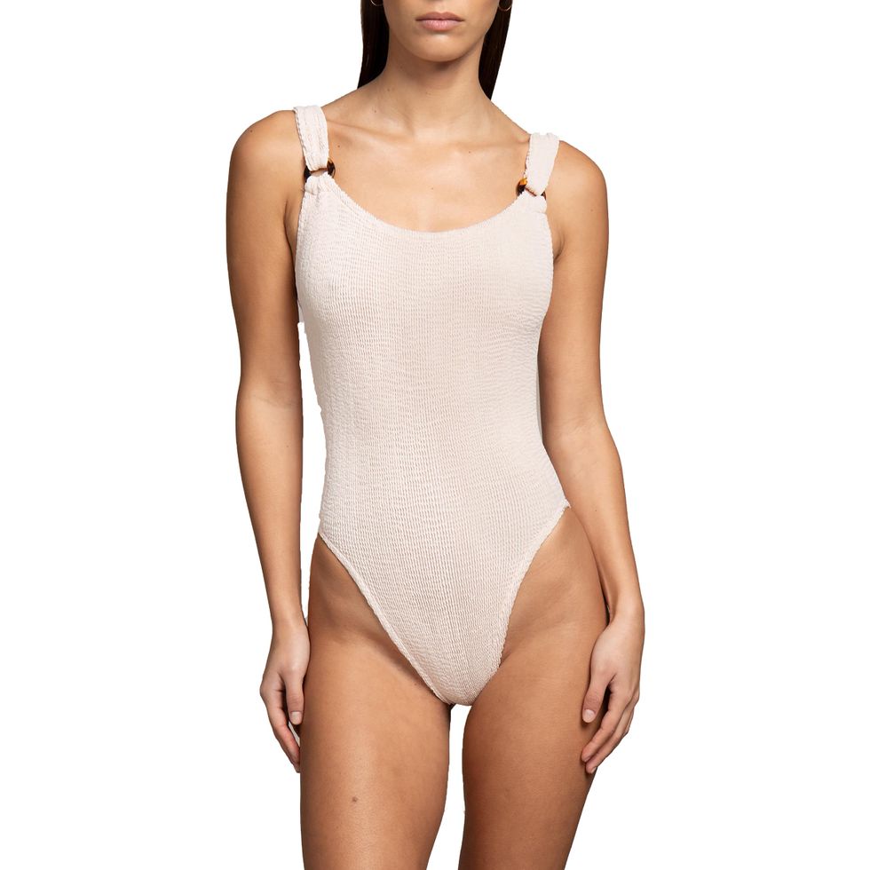 1. Hunza G Domino Swim in Nude: Their site nearly broke when Rosie Huntinton-Whitely posted a vacation pic wearing this one-piece but I’ve been a fan of the brand since long before their viral fame. The crinkly fabric makes them one-size fits almost all, which means you can eat all the fries and aperol you want without feeling stuffed in your swimsuit.
