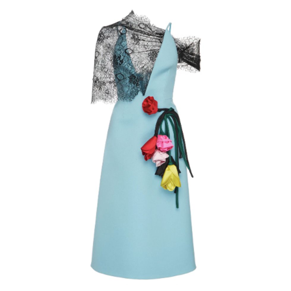 1. Prada Lace-Paneled Appliquéd Gabardine Dress: Call it cliché if you want, but the first thing I thought when I laid eyes on this dress was that it was so romantic. And I love leaning into that theme, especially on such a joyous occasion.