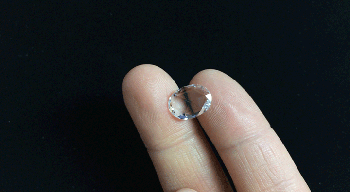 “This particular oval is completely different and out of the box. An oval is the shape of the stone, but the cut of this style is a rose cut. It’s not a full cut diamond, there’s no bottom to it—it’s completely flat and domed on the top. There’s facets on the top and on the bottom there’s one long, big facet which makes it flat.
