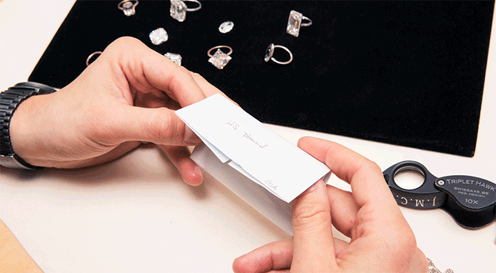 “Parcel paper is the way the diamonds are traded all over the world. A rough diamond comes in that way and a finished polished diamond leaves that way, in the paper, which is the most amazing thing to me because it’s so ancient, the way diamonds are traded still. You look at diamonds on white paper because that’s when the color comes out the most.”