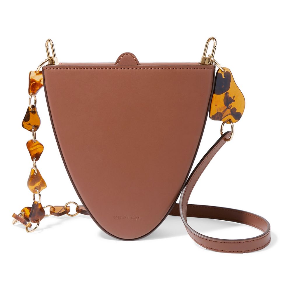 1. Naturea Sacra Cyssus Leather and Resin Bag: My knees get weak for this color of leather, and when you pair that with tortoiseshell slices for the strap, well, I’m on the floor.
