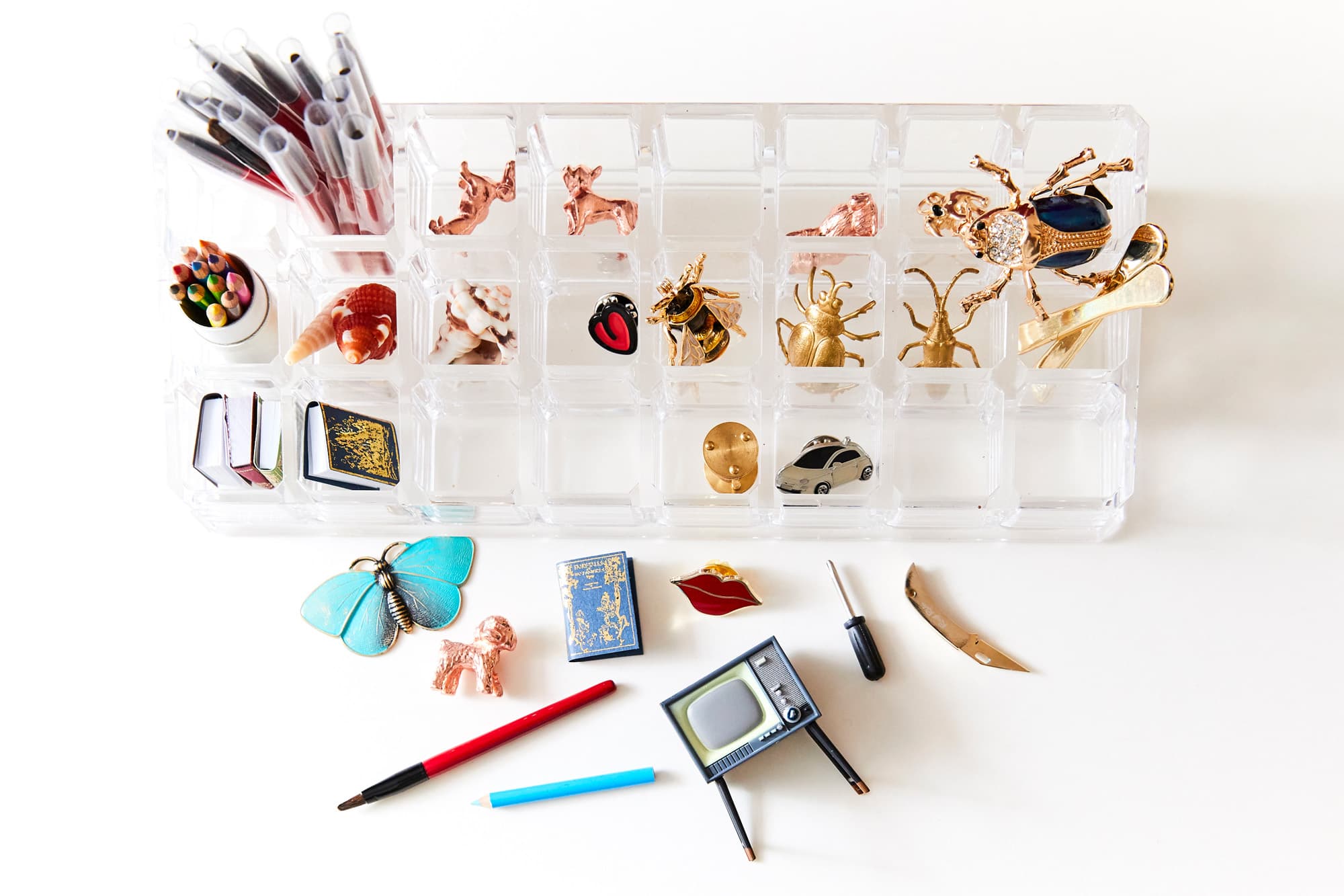“If I do something that has rhinestones or sequins or glitter, that’s going to cover the texture of the lips, I usually don’t do anything, because it’s better when they’re more resilient. But if I have to do swatches of straight lipstick, it’s like a 24-hour process to get ready. First of all, you have to get rid of all the peach fuzz, so I have those little brow razors. That was such a life-changing thing—getting rid of those little white hairs. As soon as you get rid of them, it’s flawless. I also have two of my favorite overnight lip masks [