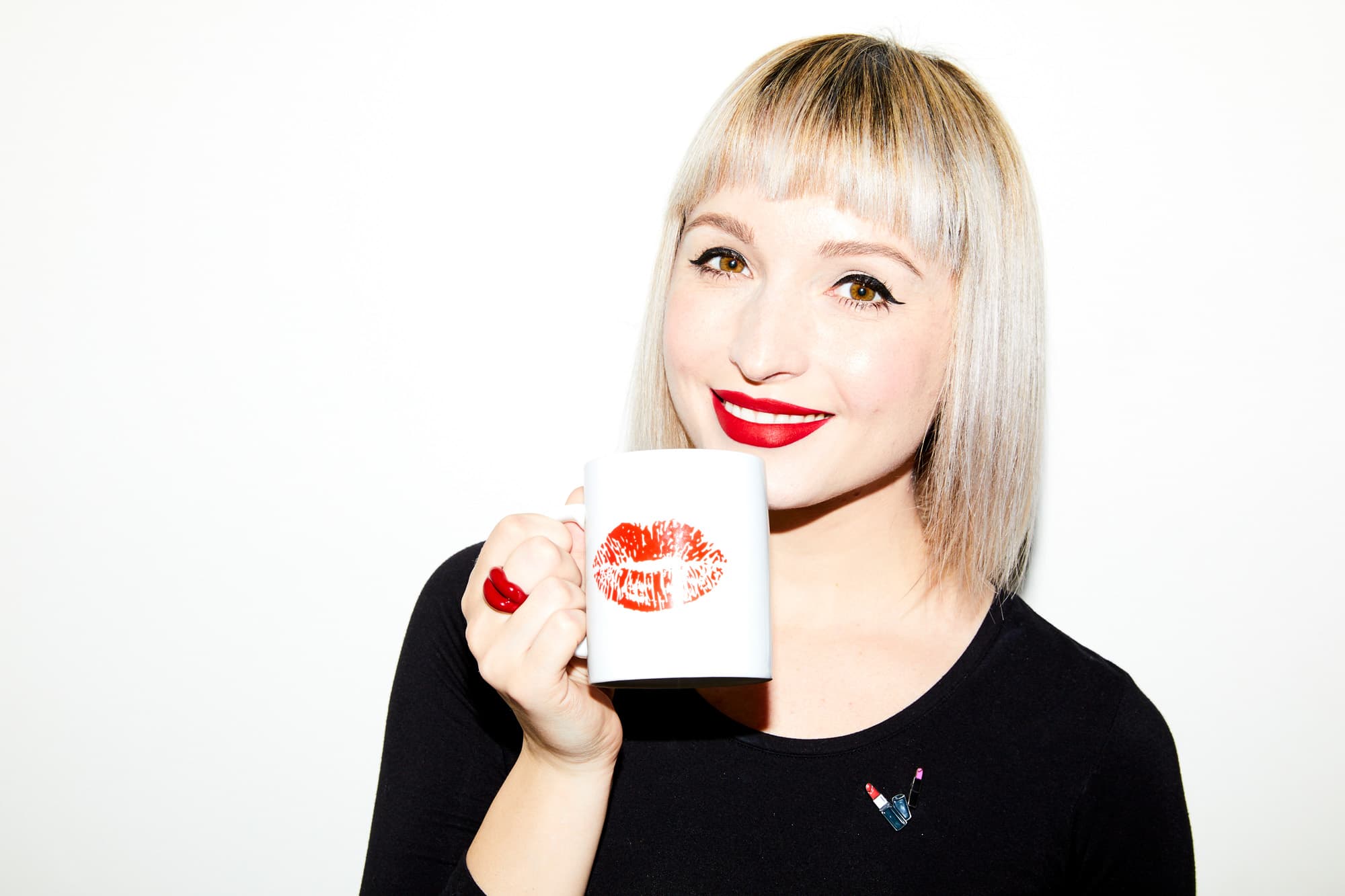 , it was a now-iconic image of a copper metallic mouth with a single drip inching downwards from the bottom lip. The image looked computer-generated—the flawless shape of her lips, the smooth, chrome finish of the lipstick, and the perfect droplet caught at *just* the right moment—but it’s not. It’s the elbow grease of one very hardworking, patient, and precise Haggerty from her apartment in Los Angeles that she shares with her husband and small, fluffy white puppy. (This elbow grease, by the way, led to some