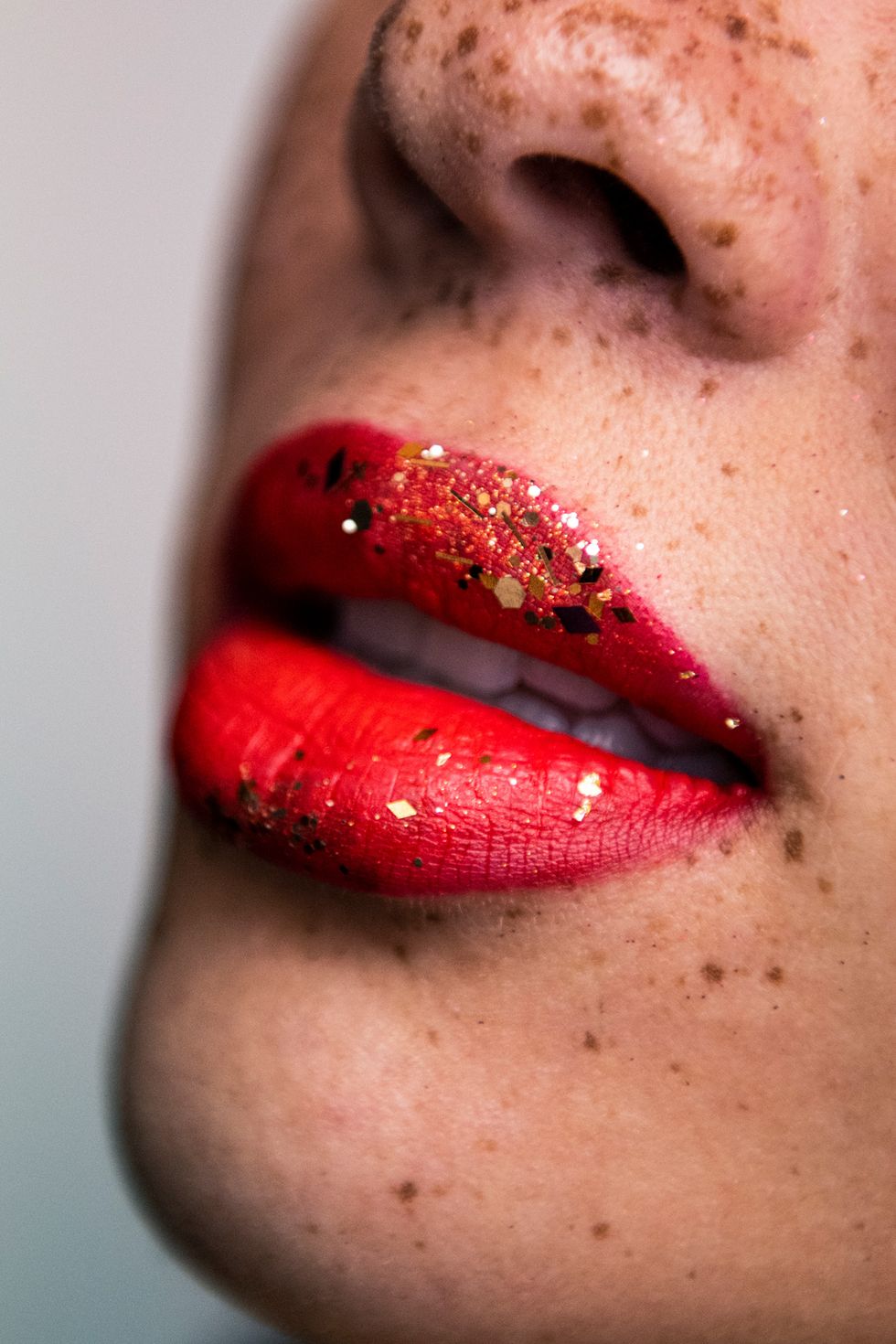Glitter doesn’t have to be reserved for your eyes. A few flakes can enhance a bright berry lip and draw even more attention to your gorgeous pout. These paper-thin sparkles adhere easily to your lip product without needing to use glue or gloss, and they look especially stunning when applied in an asymmetric pattern around your mouth. Use a slightly damp lip brush to transfer them easily from the glitter pot, and get ready to be the star of every holiday party for the foreseeable future.