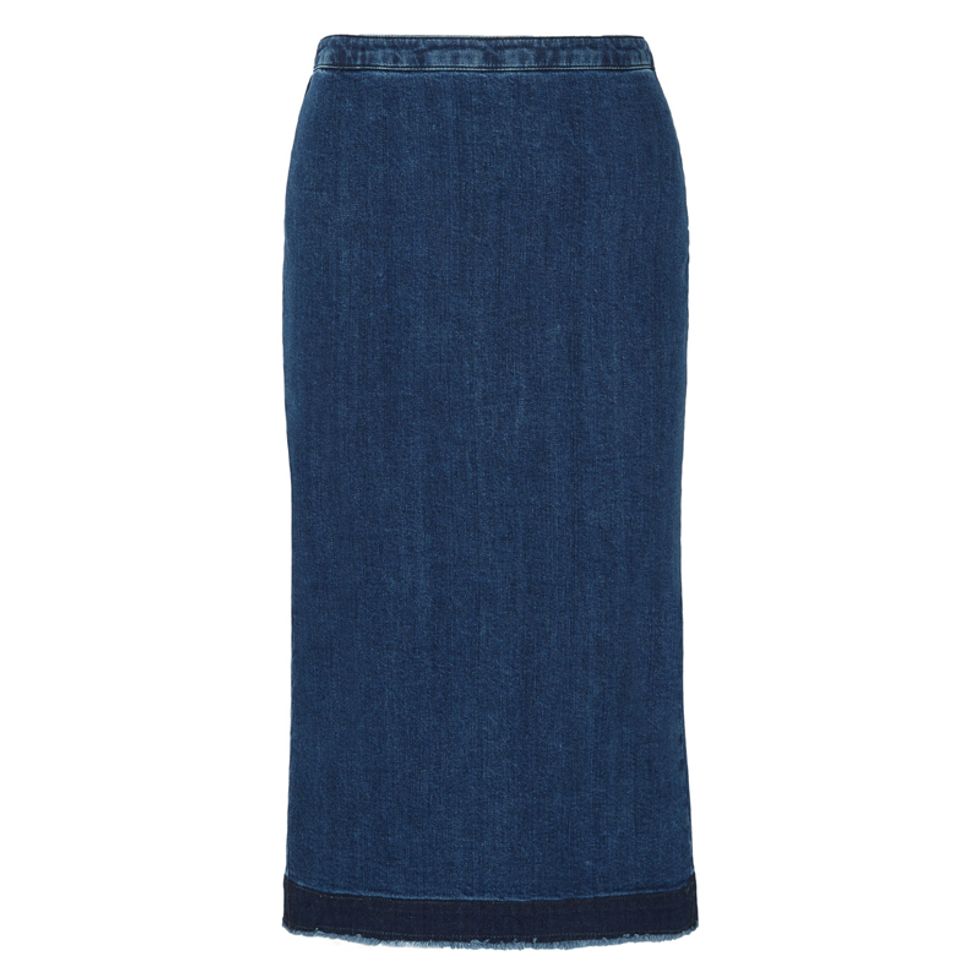 3. McQ Alexander McQueen Frayed Denim Midi Skirt: Puffers go great with denim, but since I prefer skirts and dresses to jeans, I’d pair mine with this beautiful dark-wash number.