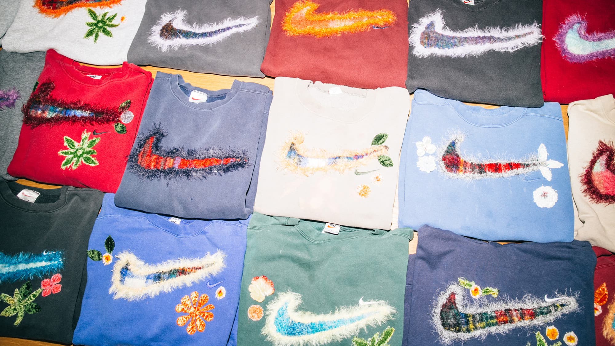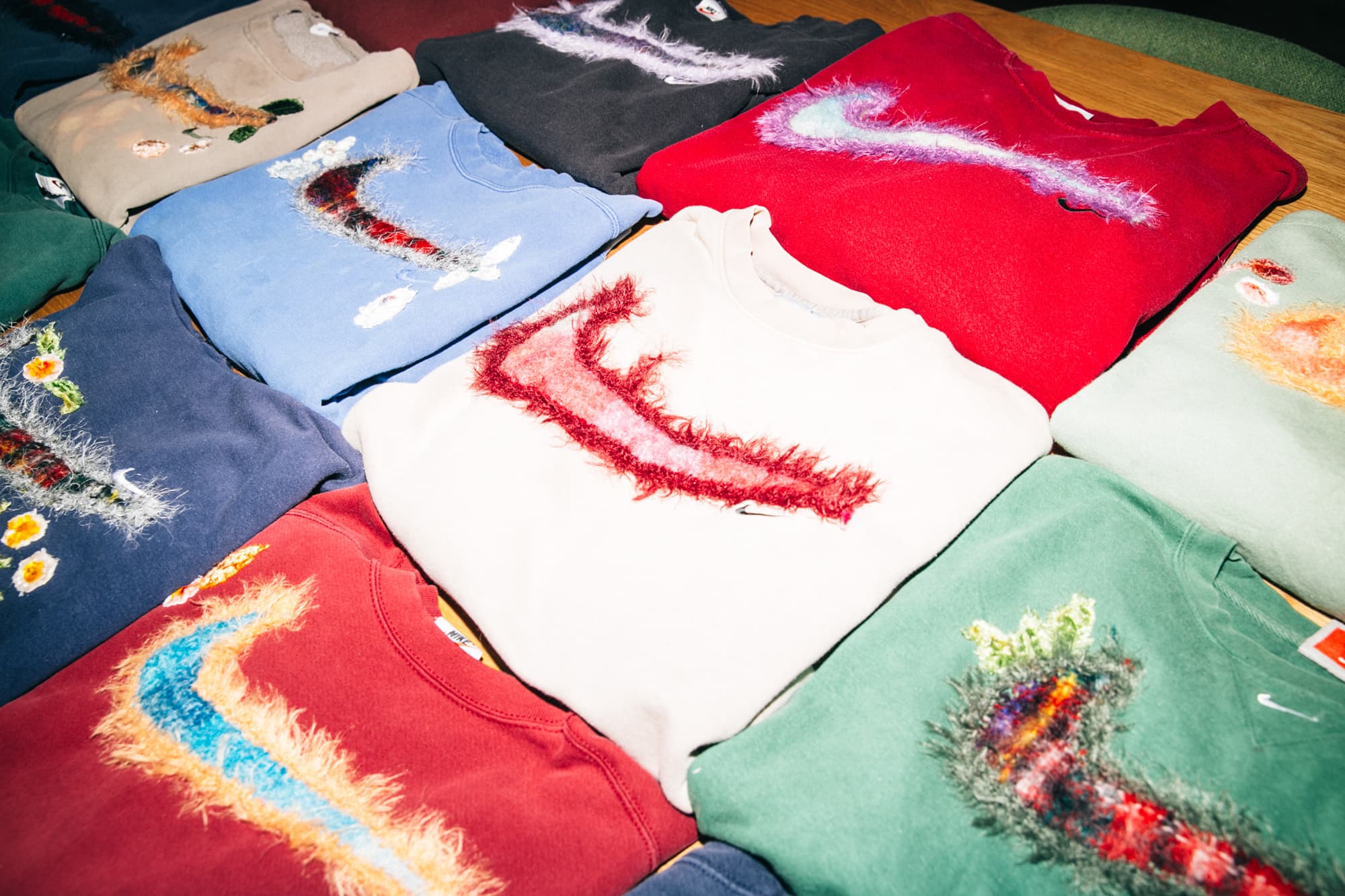 “One year Nike released flagship [sweaters] in certain cities like New York, San Fran, Portland—they’re called NikeTowns, so we did a NikeTown collection. Then we did the Mini Swoosh collection. We had some batches [in between], which are random one-offs. The mohair is a step up.”