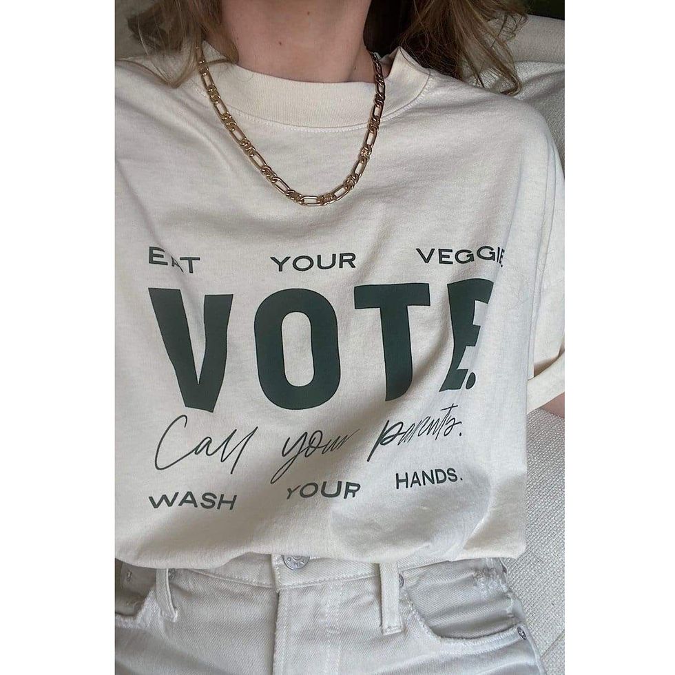 Voter merch is prolific. A quick scroll through Instagram and you’ll see all sorts of brands championing the cause, whether that be through ads, partnerships, or merchandise. While every effort is appreciated, we decided to comb through the list and find the ones that are pegging their sales to some sort of donation to wonderful organizations like When We All Vote, Rock the Vote, and I am a Voter, just to name a few. Continue scrolling to discover how you can support the efforts via your favorite pastime: shopping.