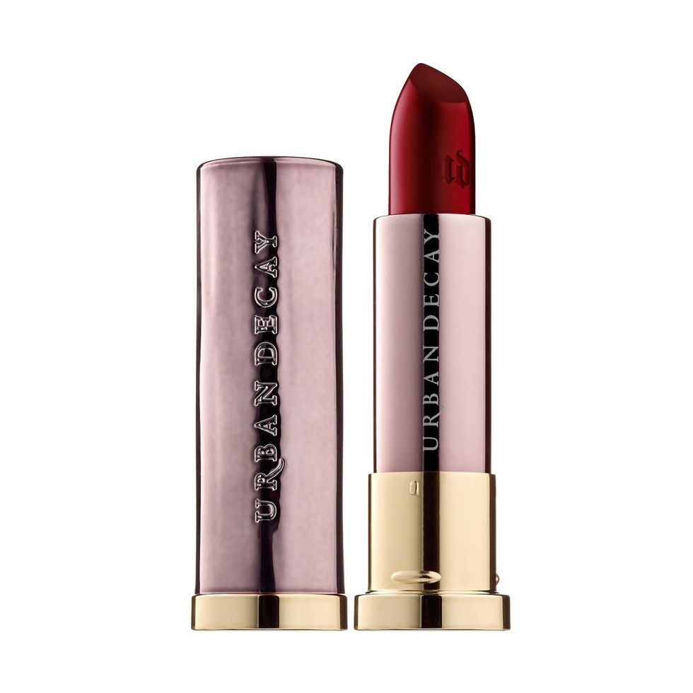 “I wear red lipstick pretty much every day of my life. And while I love a classic red during the day, like Gucci Rouge à Lèvres Satin in Teresina Ruby or Maybelline SuperStay Matte Ink in Pioneer, the color I wear when I want to feel sexy and sassy is Urban Decay’s Vice Lipstick in Hex. It’s a deeper, ruddy brick shade that brings my go-to red lip into evening hours. And since it’s super matte, it’s smooch-proof—something I’m sure my boyfriend appreciates.”