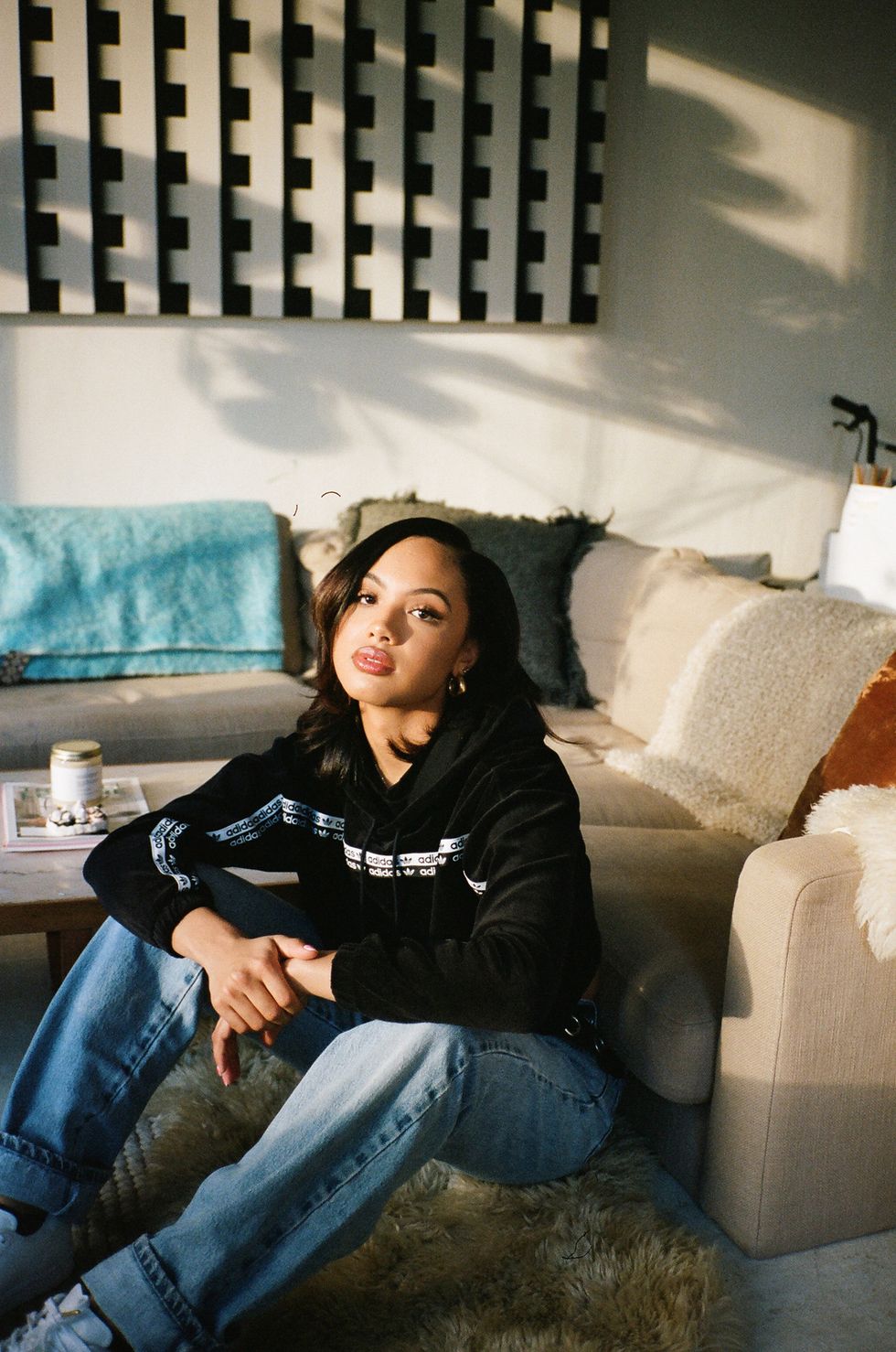“I have a few pairs of adidas that I absolutely love. I remember [when I was] growing up, I was always wearing the Superstars—the white-and-black pair—they kind of went with everything. I remember getting the Yeezy 950 boots, those are my favorite boots. I think they’re really cool ‘cause they also have a platform.”