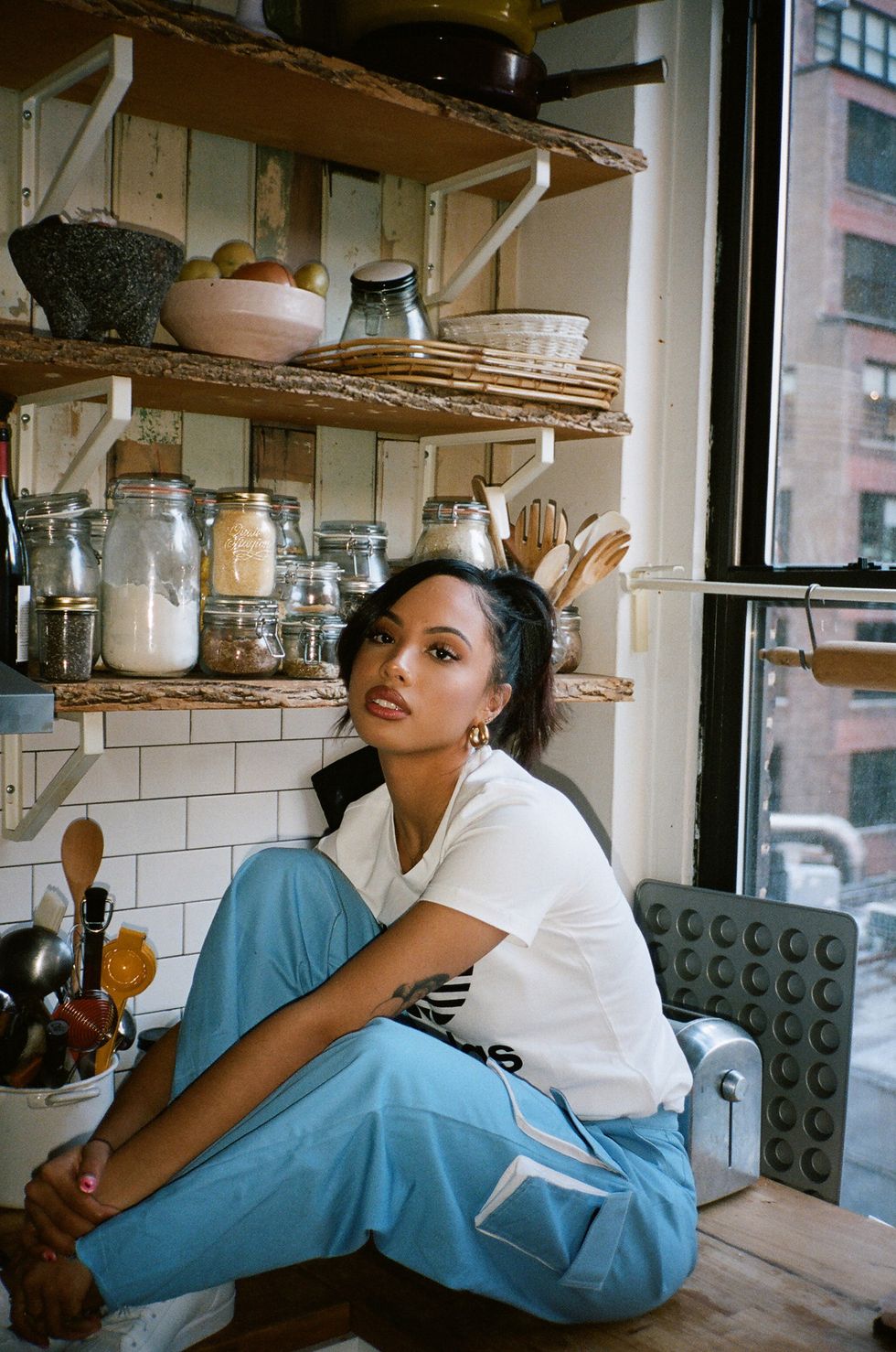 Dominican Republic–born and Brooklyn-bred, Beltre borrows equally from both the references she grew up on (keep an eye out for a Kim Possible motif in her next collection), and the city she calls home in her namesake-ish line, Could Be Maria, too. After spending the last year putting things into place, Beltre’s been moving full steam ahead with the line’s drops, the latest of which borrows from men’s workwear, only with a more feminine silhouette. And while Maria’s still slightly awestruck every time someone tags her, inspired by her style or wearing her pieces, we suggest she get used to it: Her influence isn’t going anywhere.