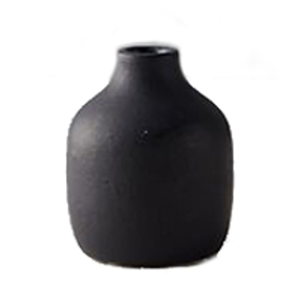 Sparse mixes featuring varying heights and varietals feel fresher than bushy bunches, which—while still pretty—tend to portray a more traditional aesthetic. Moreno-Bunge’s trick for making singular stems and fronds stand out? Invest in a flower frog to place at the bottom of the vessel. The frog’s spike-y pins hold plants in place, letting you get as creative and expressive as you want with even just a few flowers. “Try juxtaposing a low-hanging leaf and a taller branch or flower,” she says. Or create a grouping of single stems in a collection of small bud vases for a similar effect.