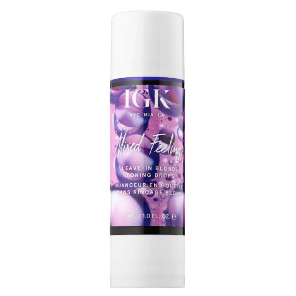 Next up was another gentle shampoo and a conditioning bond-building treatment. “I mixed together Uberliss Bond Sustainer Platinum Jasmine with IGK Offline Hydrating Mask for about 15 minutes. This helps the hair still feel really good [despite] the amount of bleaching we did. Altogether, the lifting and toning process took about four and a half hours. It does take time and patience, so be prepared to sit at the salon for several hours when getting something like this done.”