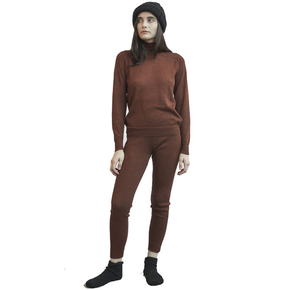 Photo: Courtesy of Wol HideDesigner Leah D’Ambrosio makes a strong case for minimalism with hand-loomed ponchos, Alpaca sweaters, and lightweight ribbed pieces ideal for layering. Produced in both Philadelphia, where D’Ambrosio is based, and Peru, much of the line is made from organic and deadstock materials.