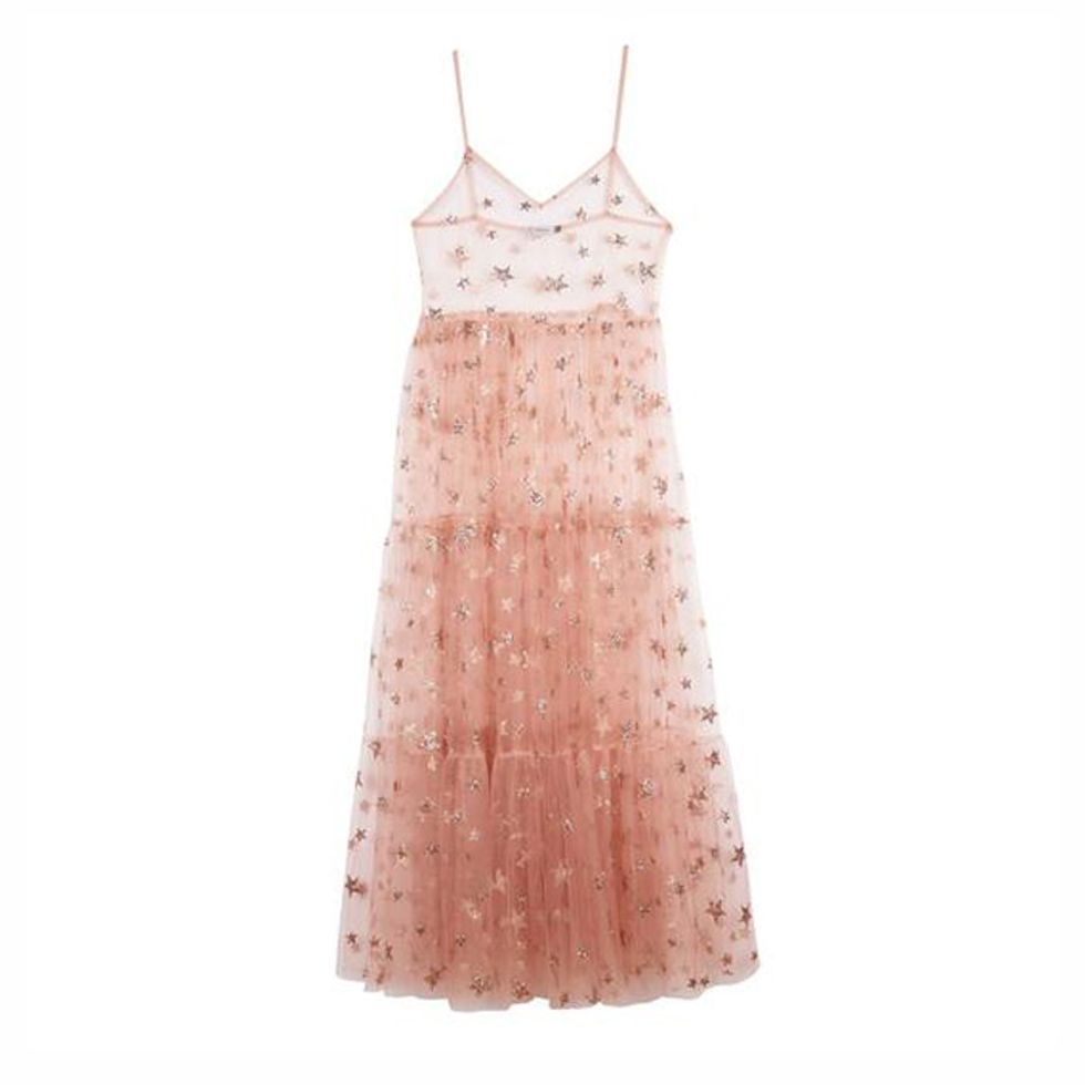 Photo: Courtesy of Cinta the LabelWhen fashion publicist Amy Sturgis set out to launch her own collection, the London native drew upon childhood memories of spending summers in Spain with her grandfather. There, she was mesmerized by the ribbons and ruffles she saw on Flamenco dresses, which have become two signature elements of her brand, Cinta the Label. Prints on her slip dresses and separates include rainbows, marbled tie-dye, and celestial motifs, the latter being a nod to Sturgis’s love of astrology.