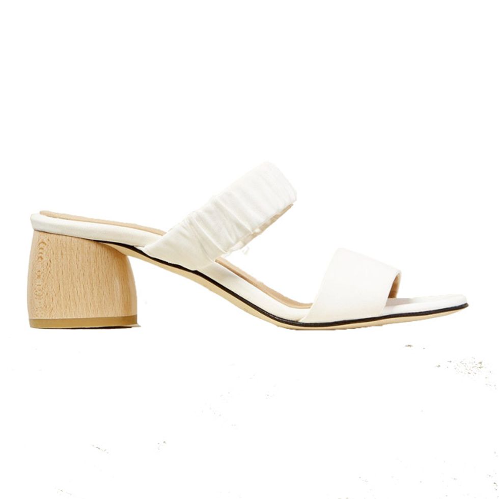 “I walk around the city a ton, so a block heeled mule or low sandal is my go-to. Two brands I’ve been especially excited about are Dear Frances and Brother Vellies—both are ethical, sustainable shoe brands. The white Scrunch Mule from Dear Frances and the espresso Dandridge Sandal from Brother Vellies are on my spring shoe wish list.