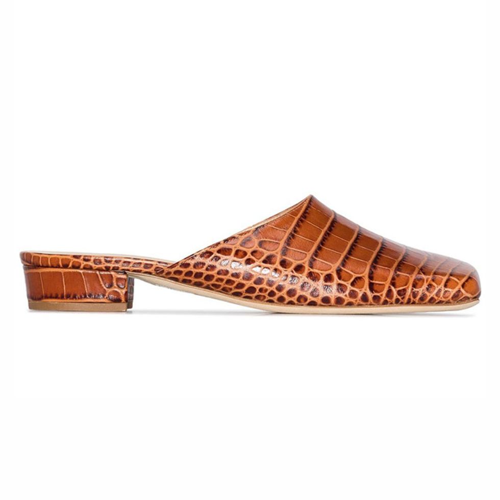 “Others I love are Miista’s Gabriella Parmesan yellow leather mules, Loeffler Randall’s chocolate Simone Toe flat, and A.W.A.K.E. Mode’s Clio 22 crocodile-effect mules.”