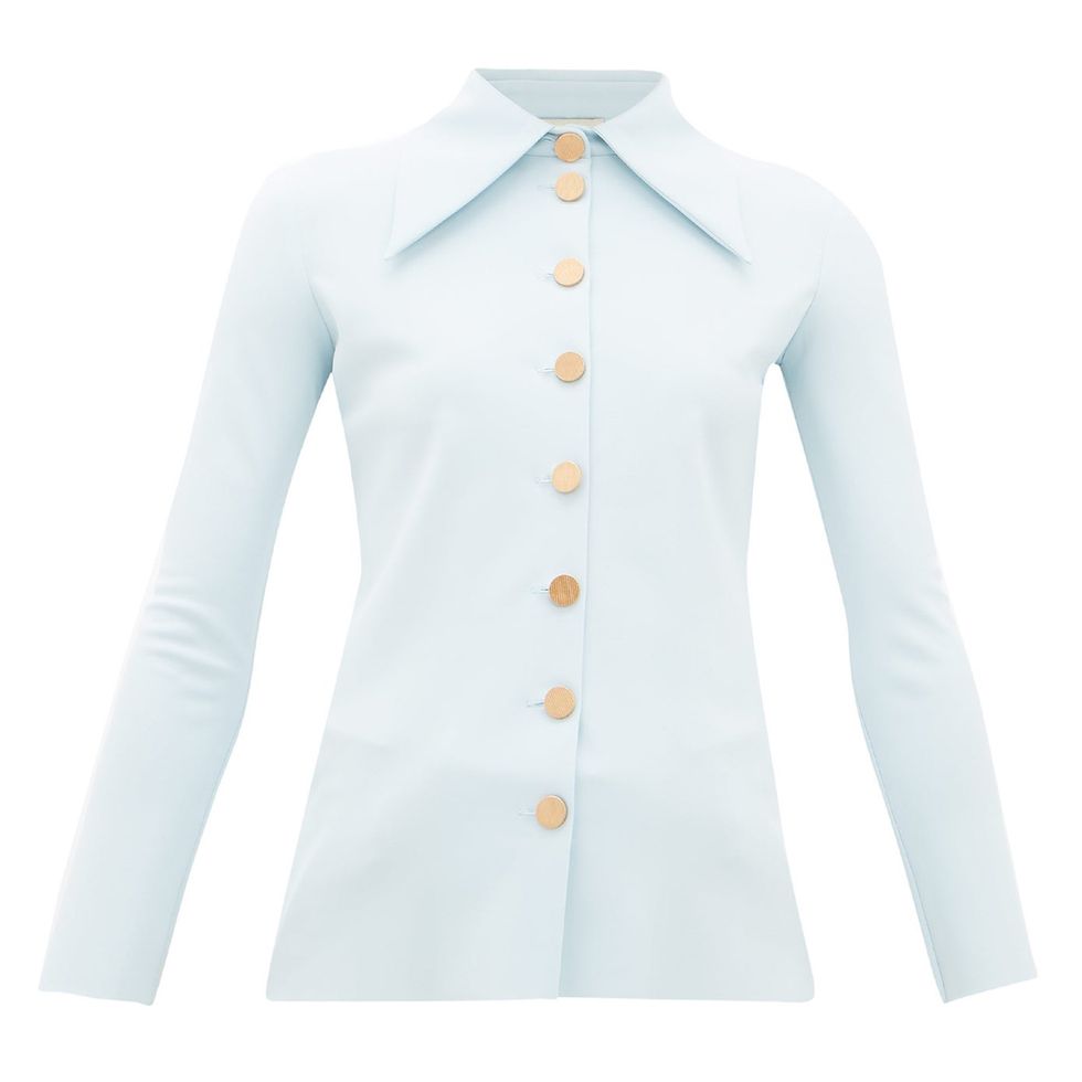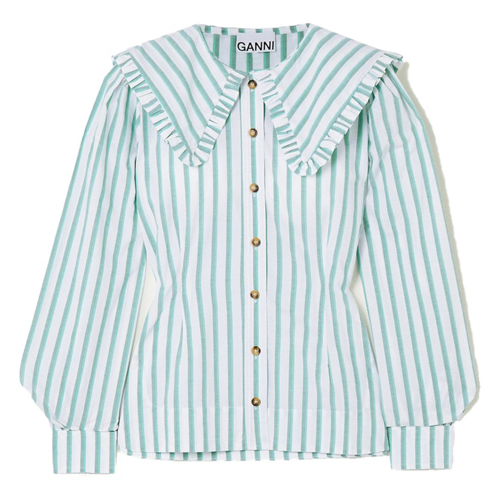 Scroll through any fashion savant’s Instagram or click through fashion week street-style images, and you’re bound to spot at least a few oversized collars. They’ve been a favorite among the fashion crowd for a few seasons now. That fire was initially sparked by the street-style-favorite brand Ganni, who has been offering an affordable cotton rendition likely peppered throughout your Instagram feed. But it was Miu Miu’s resort ’20 collection that set the trend ablaze, where models sauntered out in Chelsea collars reminiscent of the ’60s and ’70s. For spring, the trend is still burning strong and was seen on many runways. Jonathan Anderson at Loewe favored a sharp, exaggerated version of the disco collar, while CHANEL opted for a more romantic style.