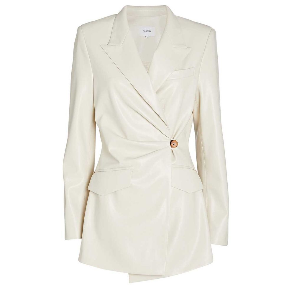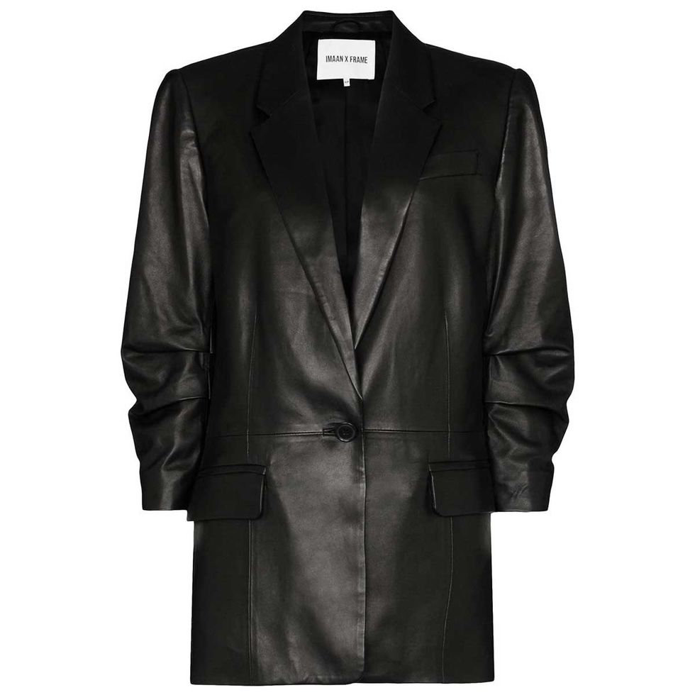 A good leather jacket has always been a wardrobe essential, especially for transitional weather in the fall and spring. Even just reading the words leather jacket means you’re probably thinking of the short biker style hanging in your closet. It’s time to say goodbye (at least temporarily) to the biker and hello to your new favorite style for the season ahead, which is a bit longer, stylish, and oh-so-versatile. It’s inspired by the blazer or trench coat and is perfect over work attire, a minidress, or a sweatsuit to go get another bottle of wine—because, let’s be honest, that’s most outings nowadays.