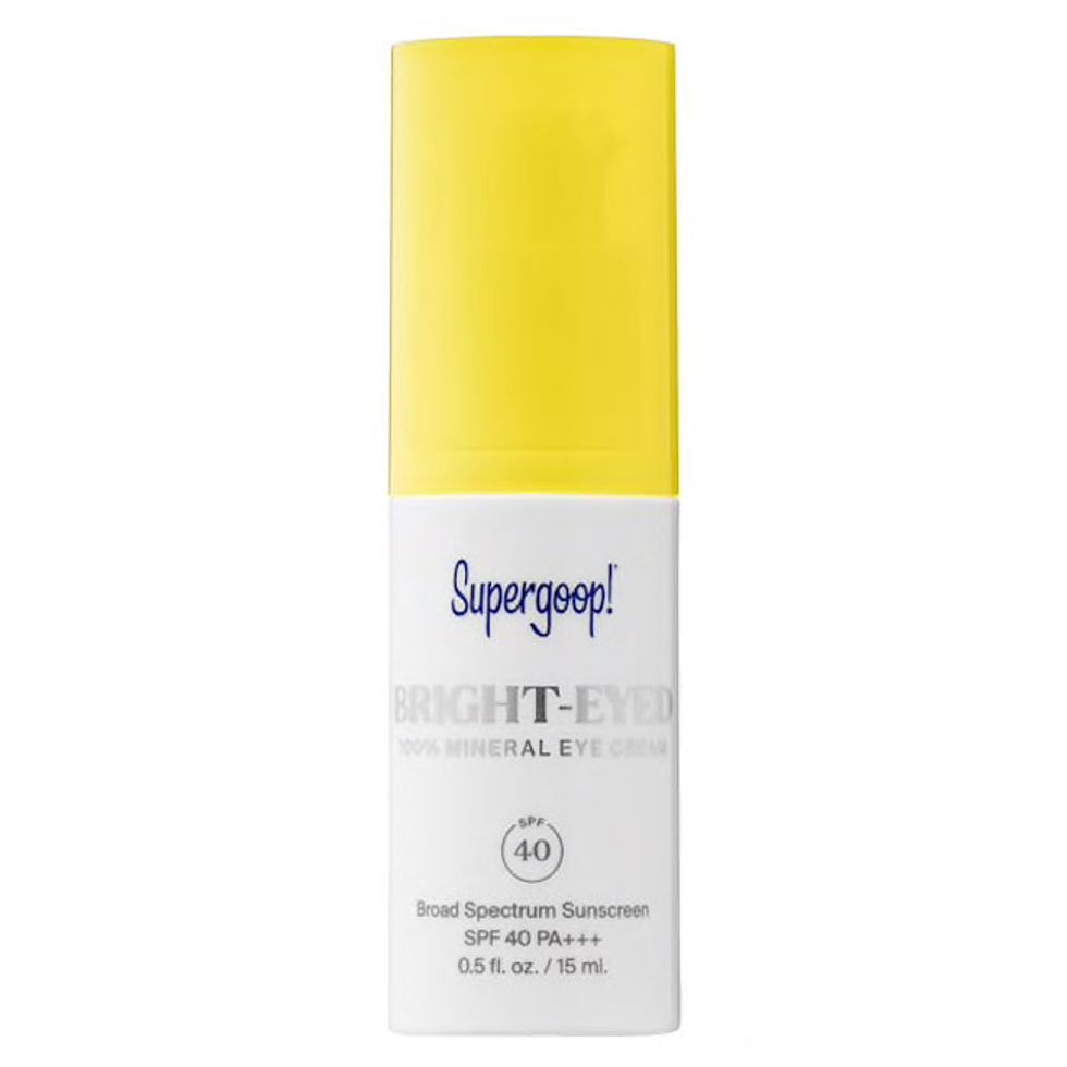 1. Supergoop Bright Eyed 100 Mineral Sheer Eye Cream: This is a sheer under-eye brightener that doubles as a daytime eye cream. It doesn’t cover with color, but it offers an illuminating tint that helps me fake a 12-hour sleep. I apply it sparingly underneath my eyes in the morning and call it part of my skin-care routine.