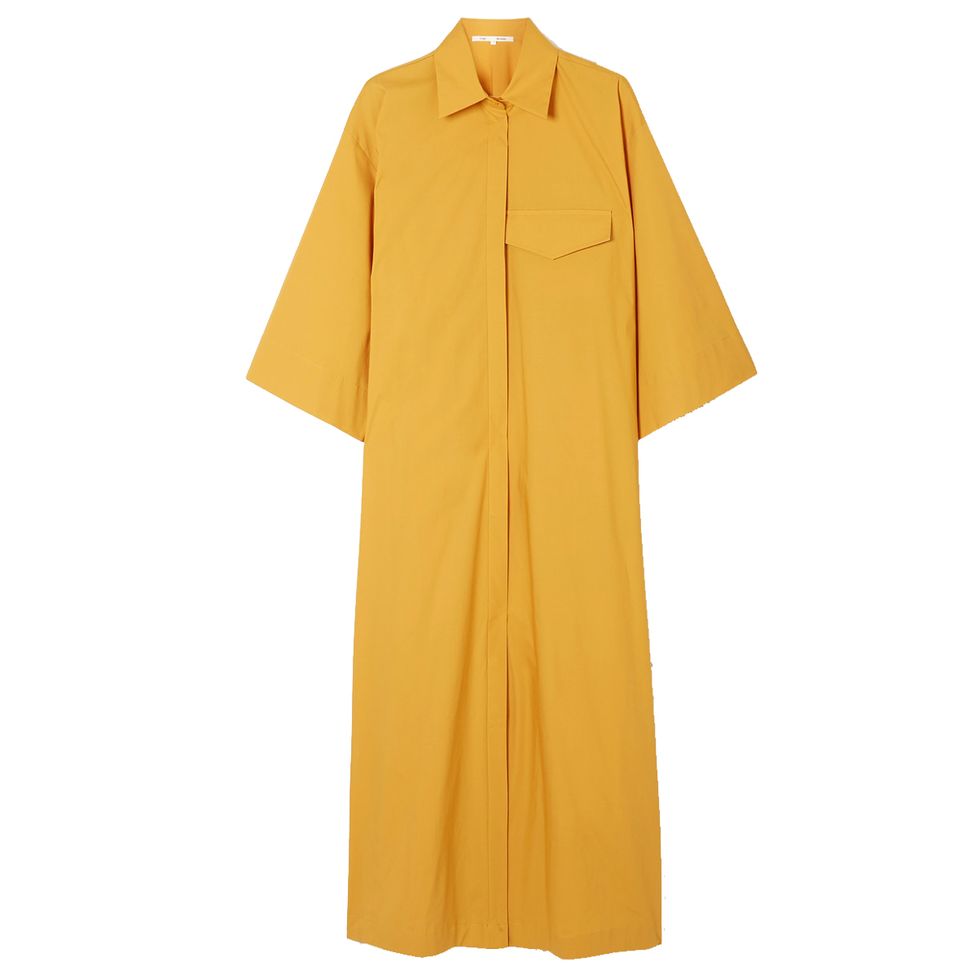 Women’s Wear Daily recently pointed out that the house dress, a silhouette steeped in a complex gendered history, is one of those styles. The draw these days is their overwhelming sense of comfort. The boxy silhouettes are the opposite of restricting. Designers have found ways to draw inspiration from and slightly rework the original style to produce modern renditions of last century’s house dress. These reimagined pieces are chic, surprisingly flattering, and don’t require heavy styling. Add one to your closet for an instant summer mood boost.