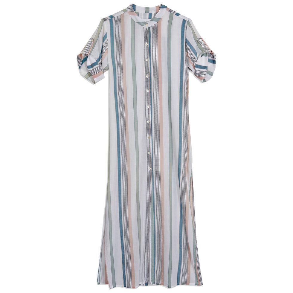 The quest for the perfect bathing suit cover-up often seems fruitless. There is always a vast disconnect between aspiration and reality. Our thoughts often drift to the mental image of a film star donning a luxe caftan, sunning herself by the pool of a large estate in Monaco. However, most days our “cover-up” typically consists of an oversized t-shirt casually thrown over a bikini. Where is the middle ground?