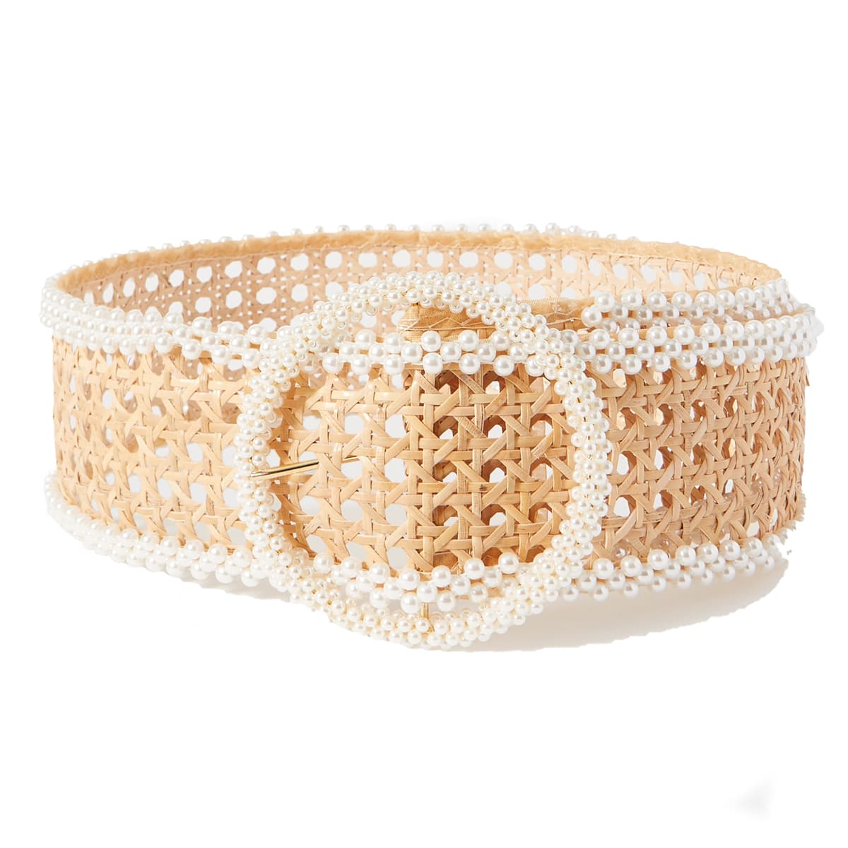 Mamba Faux Pearl-embellished Wicker Waist Belt