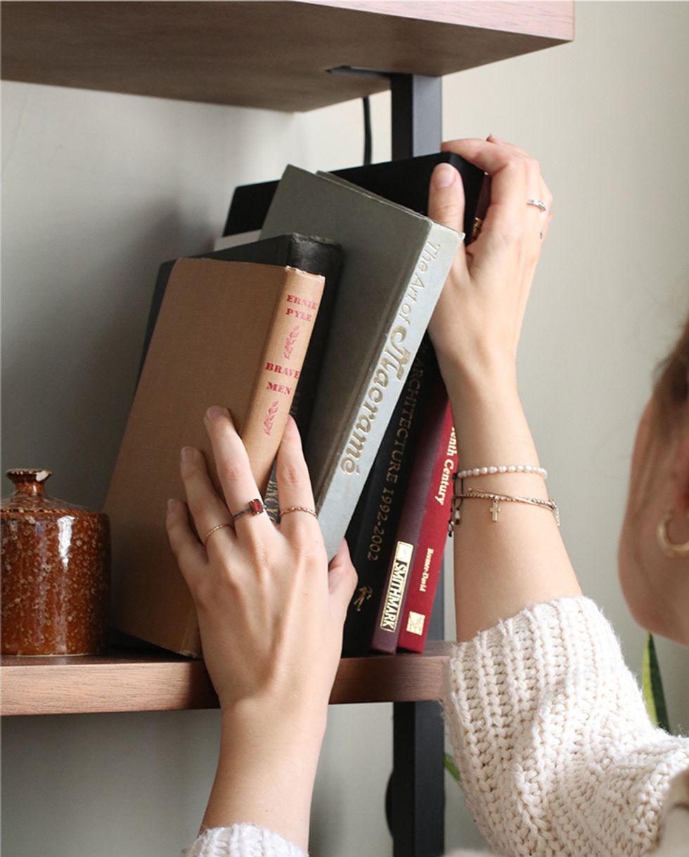 “Pieces I always keep an eye out for are: unique pottery, baskets without handles for storage, wooden furniture that can be refinished, and hardcover books in colors that match my decor. I also have a video on my Guide to Thrifting on my YouTube channel.”