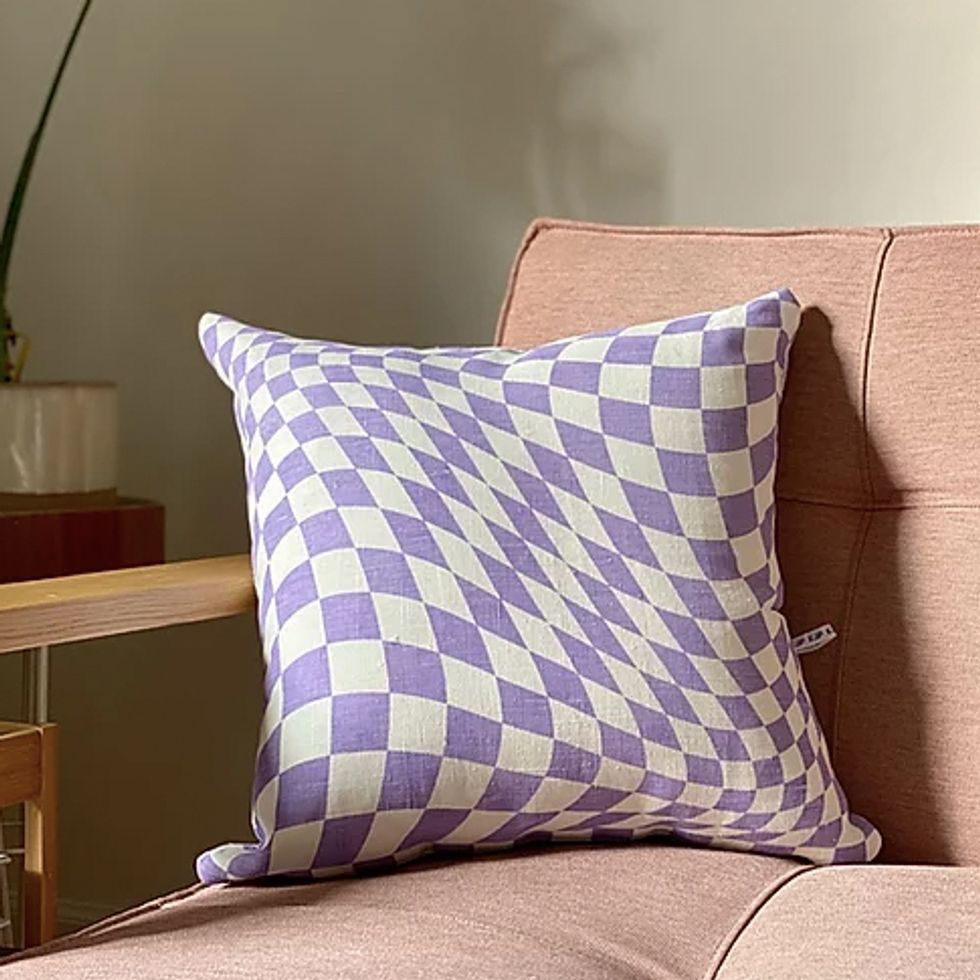 I have a pillow problem. Seriously, my Brooklyn apartment is bursting with different styles because I simply can’t control myself when I see a new one that I love. This optical-illusion checkered baby belongs on my couch, plain and simple.