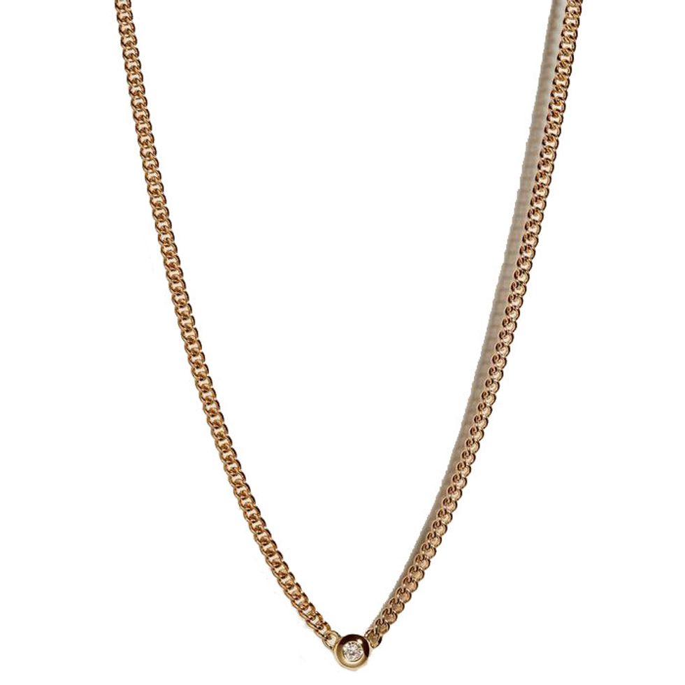 Investment wise, I can think of nothing better than gold and diamonds. Chunky curb chains are my long-time obsession and I can’t stop thinking about this style with the added puffy bezel-set stone. It’s a piece you’d never have to (or want to) take off.