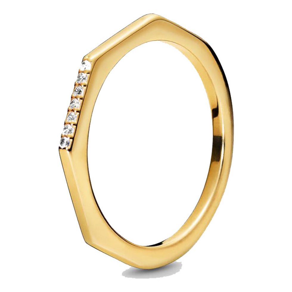 I love this industrial-looking ring that’s both geometric and minimalist. I’m 100 percent a yellow gold person through and through, so I love to stack this with my other day-to-day rings when I want a more layered look.