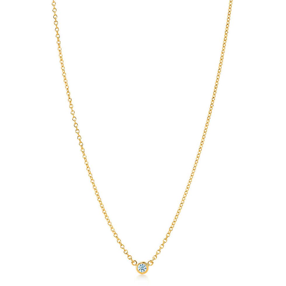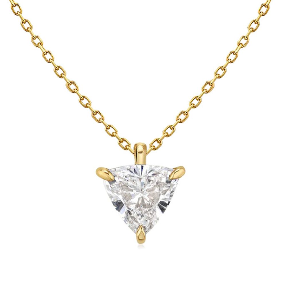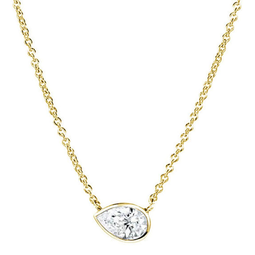 I love fine jewelry that’s classic but unconventional, like this east-to-west pear-shaped diamond pendant. It’s timeless but also somewhat unexpected, so it’s a great piece to wear alone or layered with hundreds of gold chains.