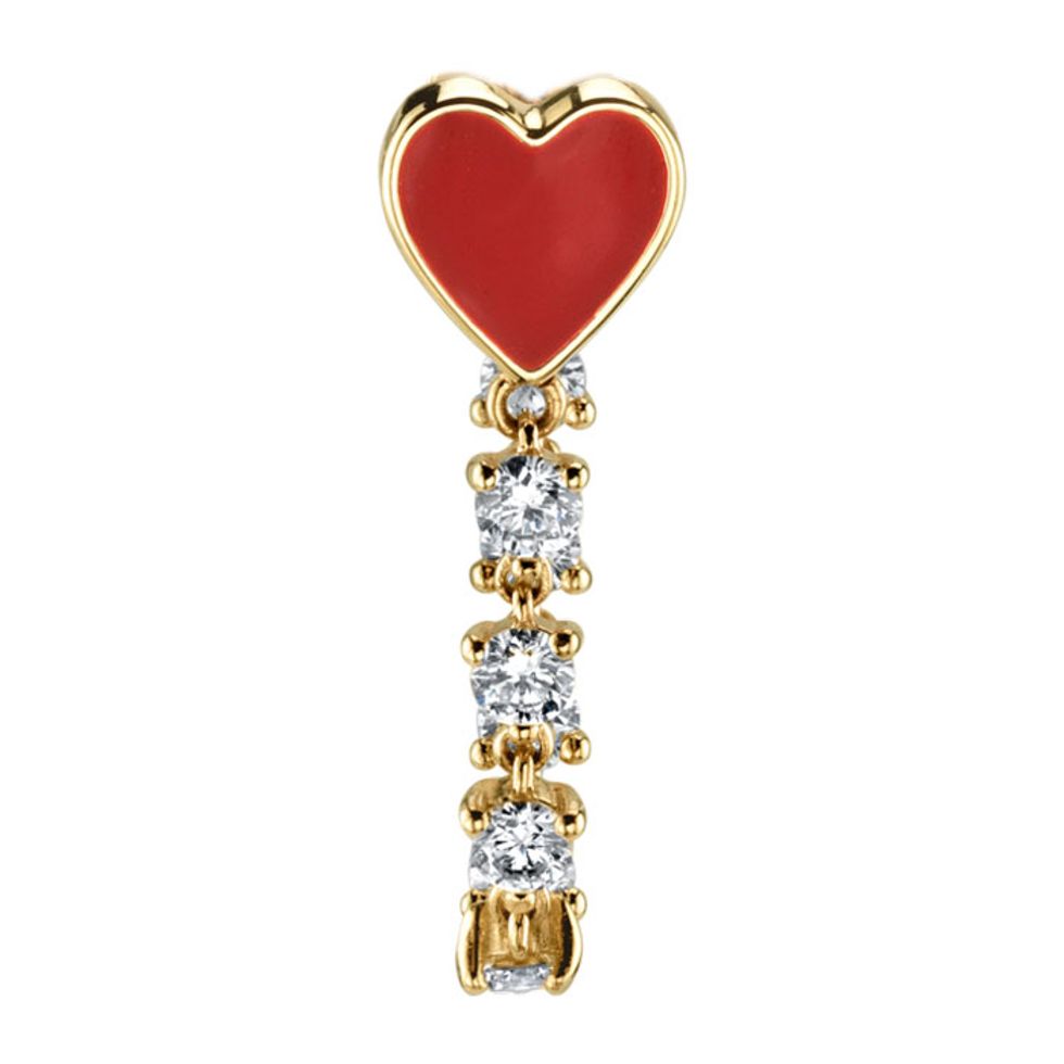The Last Line Diamond and Red Enamel Heart Earring