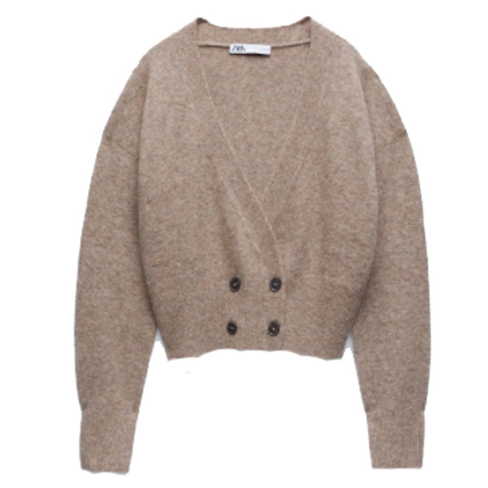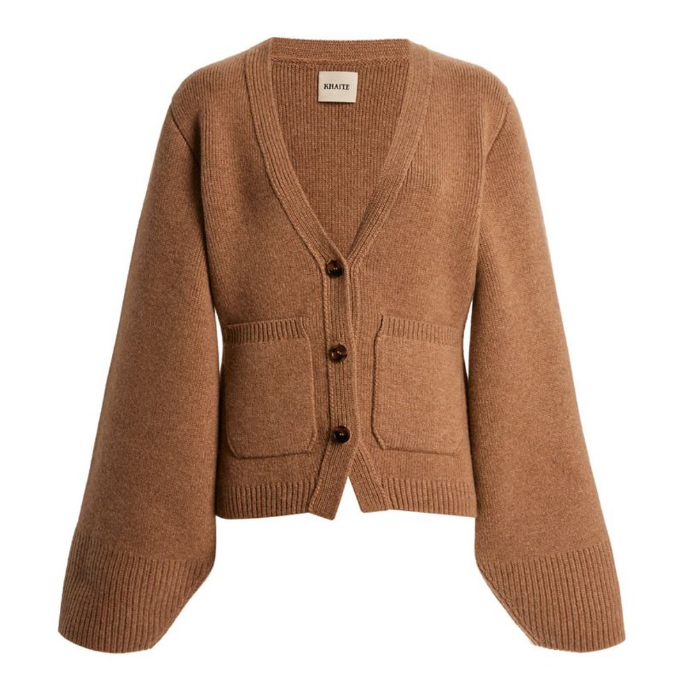 This trend has been huge ever since Katie Holmes took to the streets in Khaite’s matching cardigan and bralette set. Button the sweater as high (or as low) as you would like.