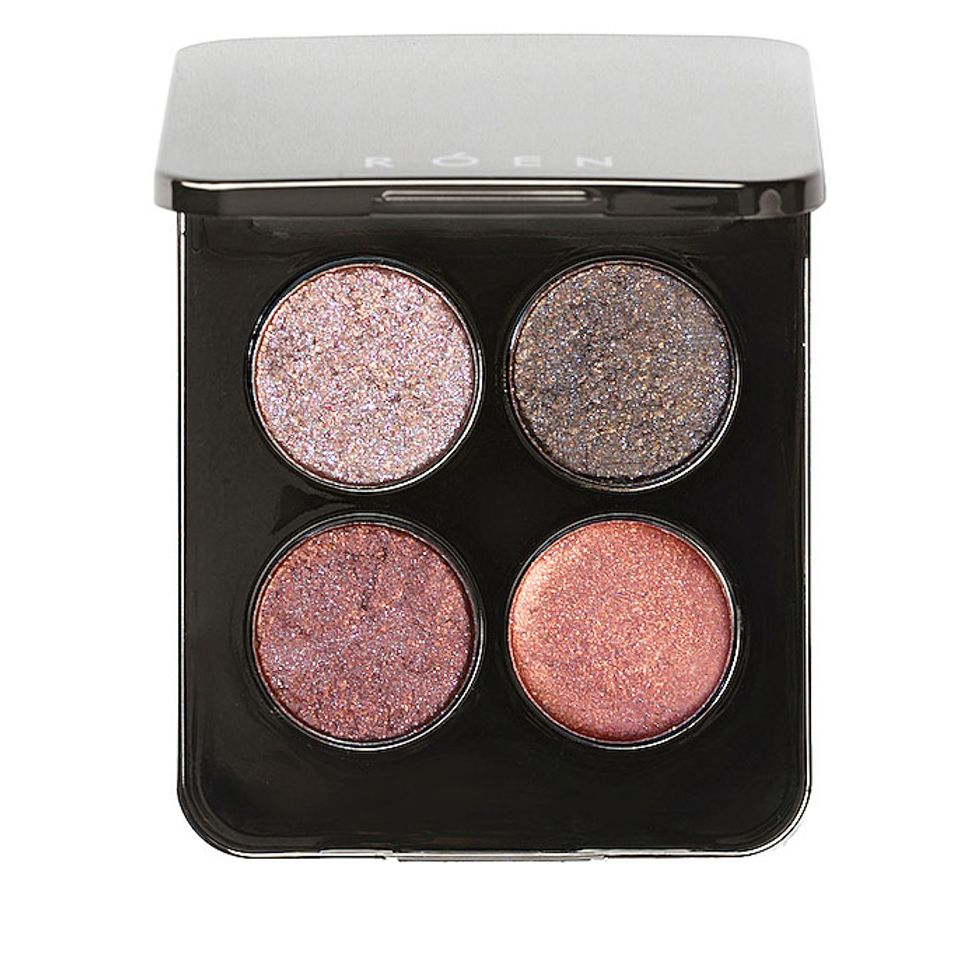 “[ Roen 11:11 Eyeshadow Palette]. The formula texture is so unique. They are sparkly and give a wet, glowy finish. RÓEN is a clean brand, so there’s no nasty glitter in their formula that usually irritates your eyes! You can load these eyeshadows on over powder or by themselves. Perfect for holiday seasons.”