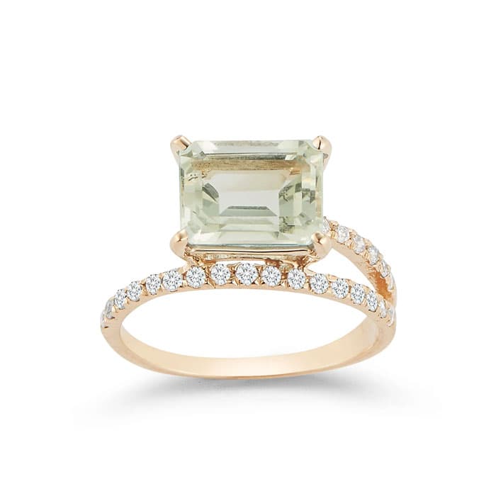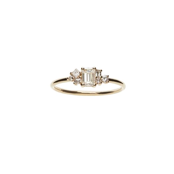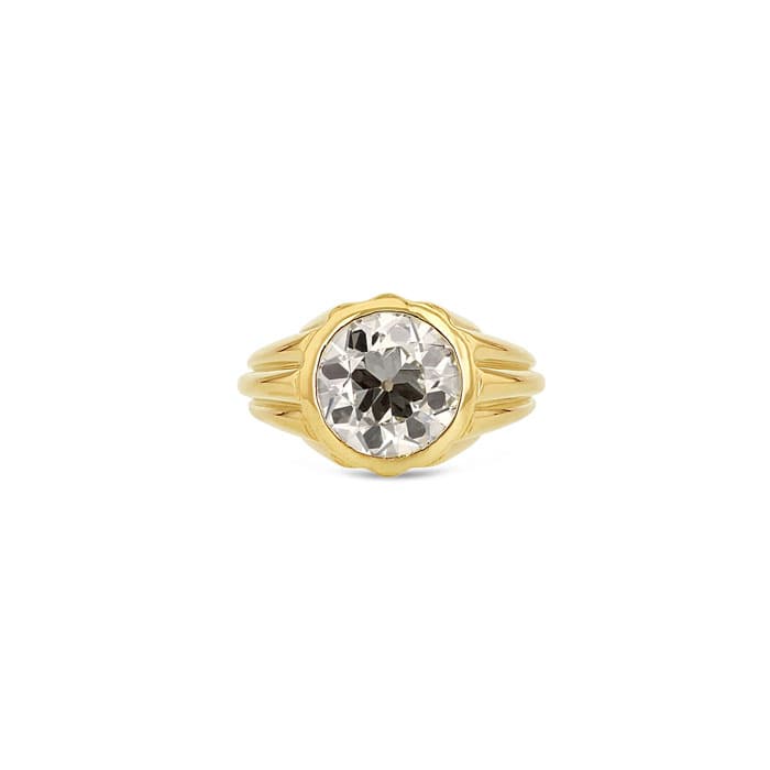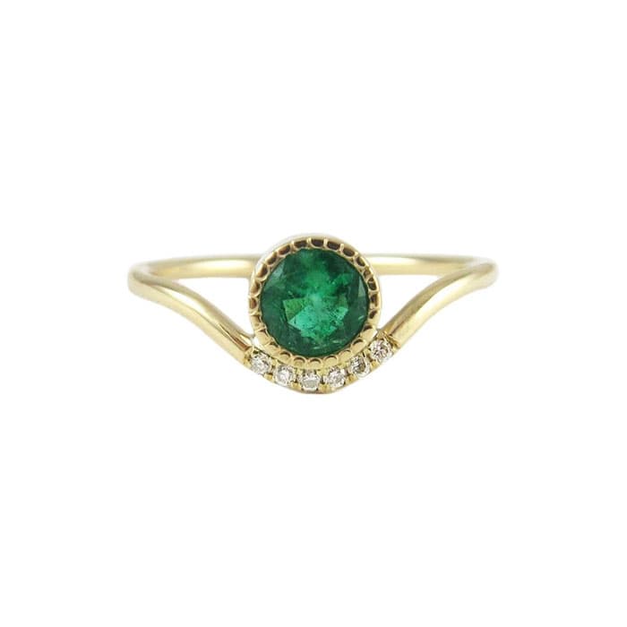 That trend has slowly evolved in the last few years, according to Yau and Révész. Says the latter, “Emerald and marquise cuts have been very popular this past year, in addition to oval, and when we do have requests for round, brilliant white diamonds, it’s typically paired with a classic bezel setting where the diamond is framed in gold or white gold. While round brilliant diamonds could definitely fall into ’norm’ land, it truly depends on the design of the ring and setting.” She cites Ceremony’s ’