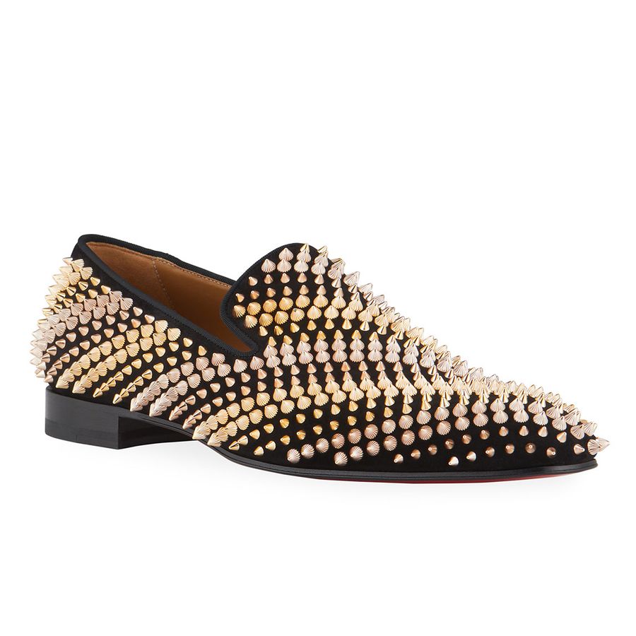 “I almost always have a pair of studded spiked Christian Louboutin shoes, which have become one of my trademarks. I also love my thrift-store houndstooth overcoat, my Issey Miyake jumpsuit (in warmer weather), my black thrift-store FAUX fur coat, or my vegan suede beige pants.”