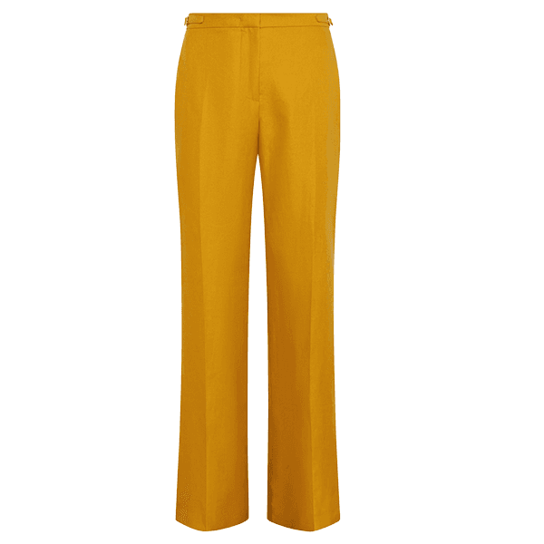 I, who for whatever reason always associated mustard yellow with spring, had a strong epiphany upon seeing a model walk down the Sergio Hudson runway in a mustard yellow turtleneck and mustard yellow trousers with a turquoise coat layered on top. From that moment forward, I will never again doubt mustard's season-defying powers. In terms of Spring/Summer 2026, Valentino sent a model down the runway in a chiffon mustard button up top paired with a purple skirt and pink heels. Hermés made a case for mustard yellow outerwear with a coat paired with black leather pants.