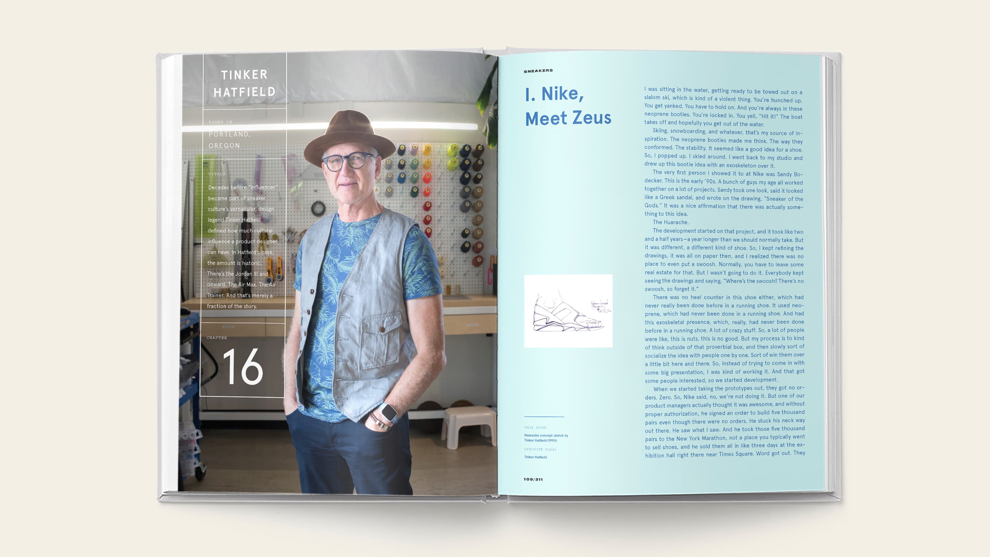 “A few hours before Cooper dropped the above bit of wisdom that we all knew would eventually conclude the book, we sat with Tinker Hatfield, the most influential sneaker designer of all time, as he told us a tale not of an epic success, but of a shoe that was, in his estimation, a total failure. He called it the foot tent, and he had based the idea on the design of a camping tent.
