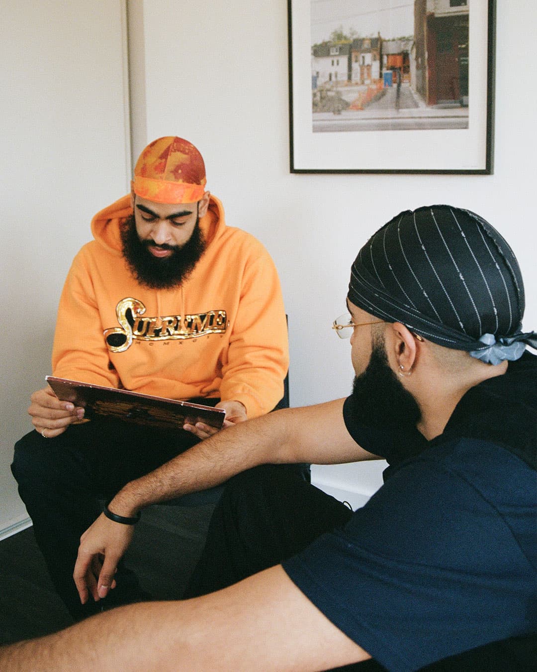 recommend grabbing a bowl of popcorn and getting yourself up to speed. We’re happy to report that the brothers are just as funny and sarcastic IRL as they are in the aforementioned skits. When they greeted us on set at The Annex hotel, they were all smiles, and it wasn’t long before they had us laughing—they even asked us if Coveteur was French (we’re not), but we still enjoyed watching them learn how to intro themselves in the language. To be honest, it took a few more tries to nail it than you would think, but it was the highlight of our day.
