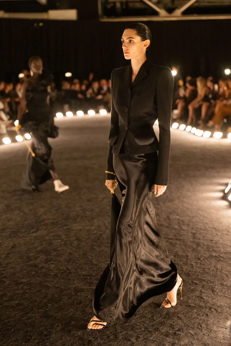 I love how versatile this look is and works off the things that most women have in their wardrobe: a good blazer and a silk skirt. There is something so timeless about this silhouette and proportions. Plus, an all-black look will always have you looking like the most elegant in the room.
