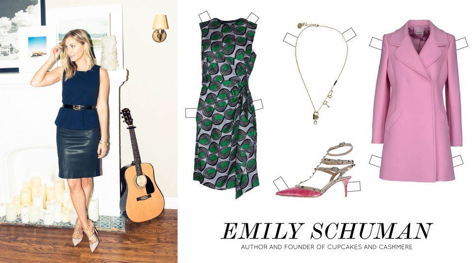 'Tis the season for discovering a totally cute DIY gift on Pinterest and spending a pretty penny on all of the requisite supplies only to collapse on the floor crying after burning yourself with a glue gun, right? While crafting something sparkly and wrapped in twine just isn't quite our strongest suit, it is inarguably that of someone like Cupcakes & Cashmere's Emily Schuman—which is why for our fictional Christmas gift, we turned to the wonders of the world wide web. What can she find under her (likely seven-foot-tall, immaculately decorated) Christmas tree? A sweet, dainty charm necklace from Chloé, printed wrapdresses from Balenciaga and the mother of all wrapdresses herself, Diane von Furstenberg; plus a pair of perfectly pointy, hot pink Valentino Rockstuds because well, what's one more? A python-printed top from Equipment (because we know girl loves a good Equipment blouse), a Stella McCartney blazer (and were Schuman not the second coming of Emily Post, social media edition, we'd secretly hope she'd end up regifting it to us in a fleeting moment of forgetfulness) and a Pepto pink Alberta Ferretti wool coat that was practically made for #OOTDs.