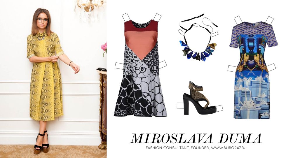 Now, we understand as well as anyone that the entire street style circus is centred around who's wearing the latest (as in, literally walked off of the runway thirty seconds ago) wares—and that's to say nothing of the most expensive. And so for Miroslava Duma, we're suggesting a compilation of pieces from seasons past that are still every bit as relevant today; and actually have the potential to knock Tommy Ton off of his game (just kidding, it's pretty much impossible). That means giving the gift of a wardrobe's worth of kaleidoscope-printed shift dresses by a veritable who's who of London Fashion Week. Peter Pilotto, Mary Katrantzou, Christopher Kane? Yeah, we're looking at you. Throw in magpie-worthy wedges by Givenchy and Miu Miu and a slightly kooky art-gallery-owning-aunt Marni statement necklace in for good measure.