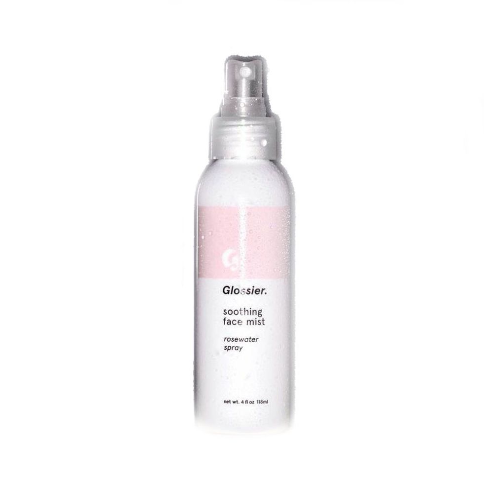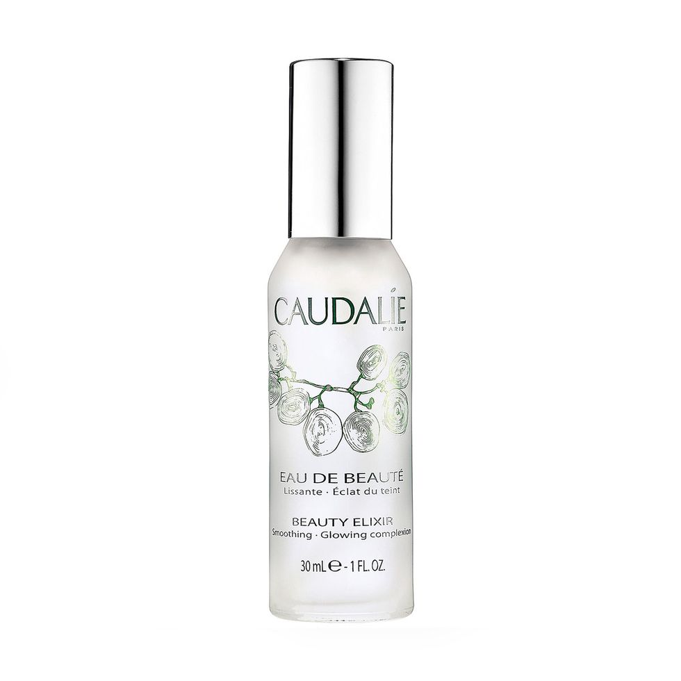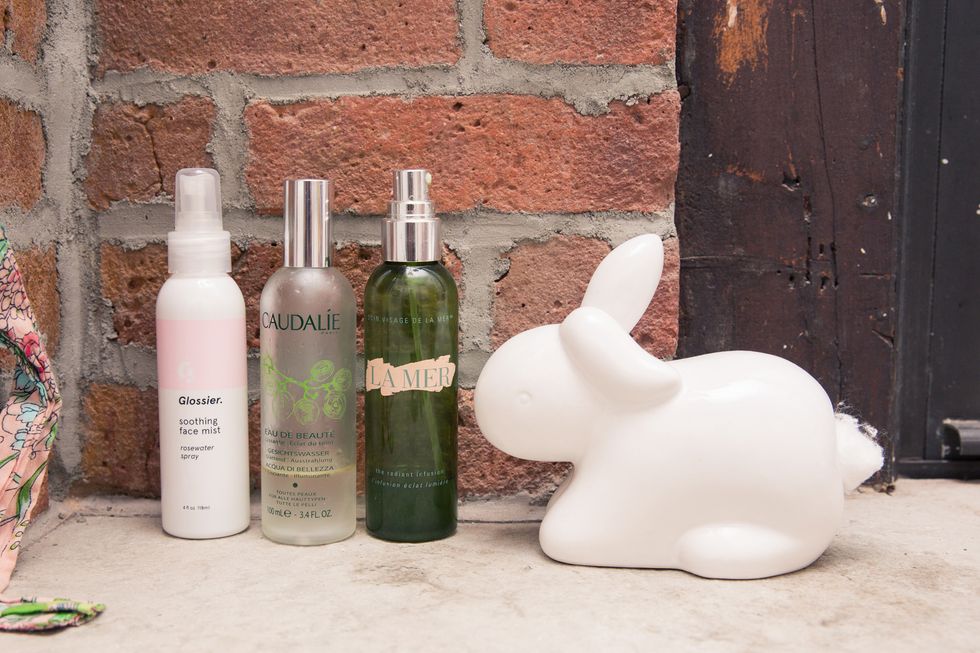 “[Then I use] Fresh Umbrian Clay Purifying Toner. This is actually my first bottle, but I really like it. You have to shake it up in the morning because it’s got clay at the bottom. It’s funky. My face started acting up a few months ago and this has the qualities of a clay mask without the time-consuming-ness of a clay mask. It sucks all the extra dirt out and is a double whammy because it’s a clay mask and toner. Then, I’ll spritz with either Glossier Soothing Face Mist or Caudalie Beauty Elixir. Honestly, people just told me to do this so I do, but it feels and smells really good—I don’t know if it’s placebo but I don’t really care. You see it in literally every cool girl’s cabinet and I just want to be cool [laughs]. But it smells good and it’s a nice way to perk up in the middle of the day.”