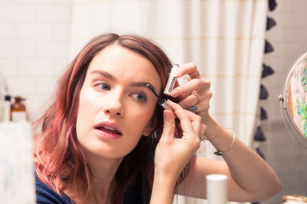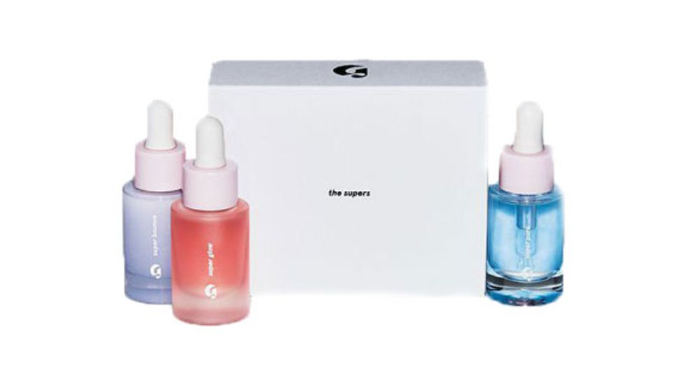 “Then I use one of these three Glossier serums—Super Bounce, Super Glow, or Super Pure. Today I used Super Bounce because I stayed up all night and I needed to wipe the sleepies away a bit. But I use any combination of the three depending on how good or bad I’ve been to my skin.”