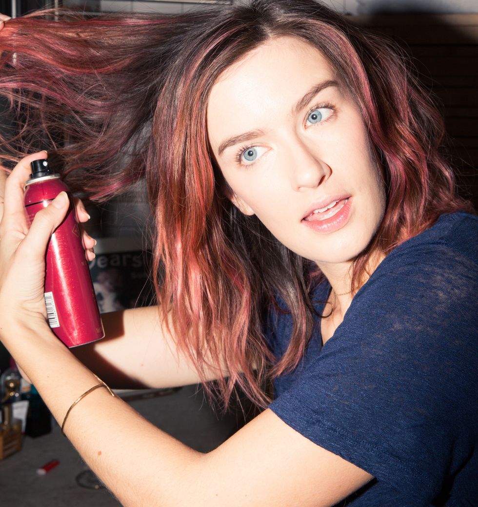 “My hair is simple. I’ll just do a dry shampoo, either Serge Normant or Klorane. I was in Paris for the first couple months of the year and I did a huge french pharmacy haul. I dragged my husband along and it was traumatic, but I got, like, 35 products—it was bad. If I’m feeling extra fabulous or I have a meeting I’ll do the Serge Normant Dream Big Instant Volumizing Spray. Or this David Mallett Australian Salt Spray—it’s really nice. It’s not as crunchy as most salt sprays.”