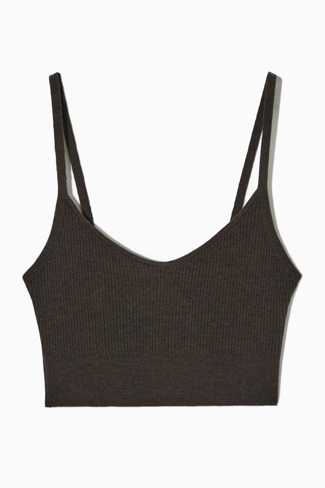 While I might plan on wearing bra tops throughout the fall/winter season, transitioning them to knits that pair well with sweaters might help me avoid frostbite. Enter: this ribbed wool bralette. It’s versatile, accessible, and might even keep me a little warm.